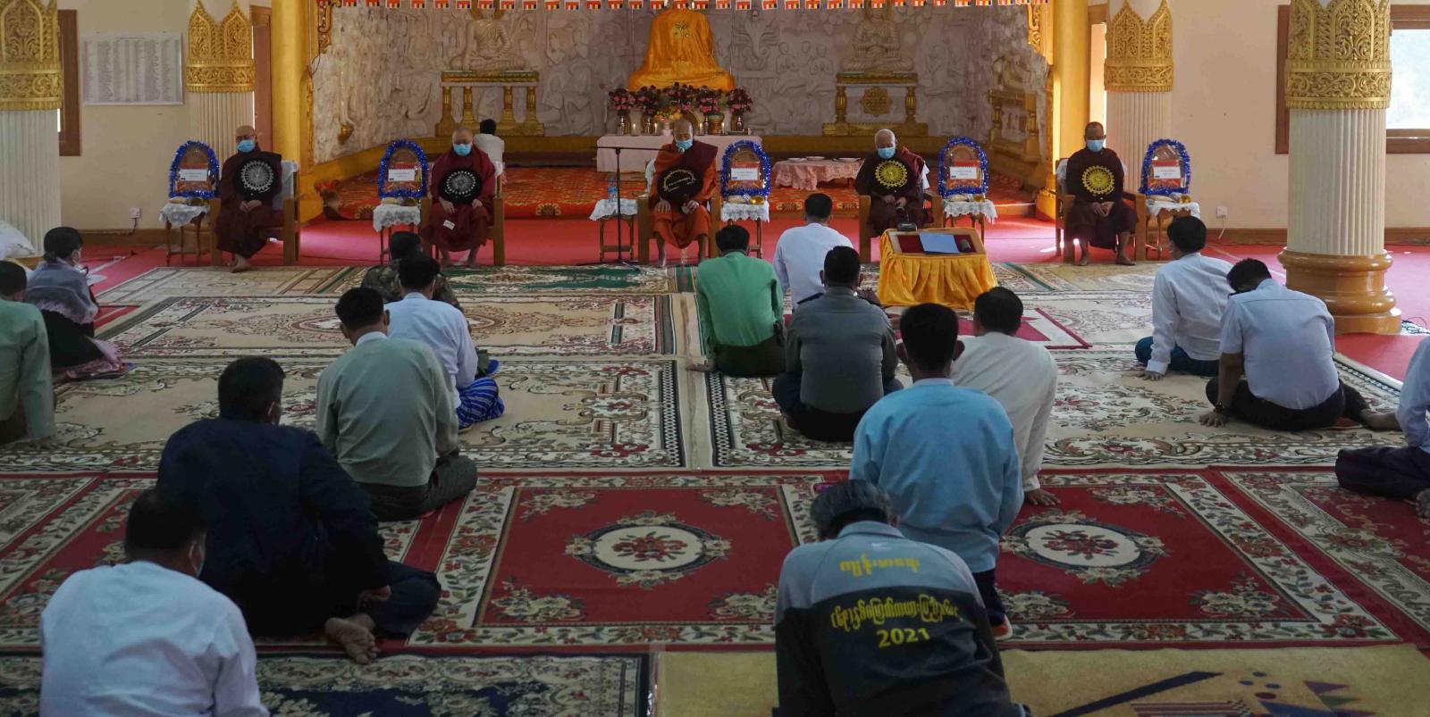 ဆက်လက်၍ အခမ်းအနားသို့ တက်ရောက်လာကြသည့် ပြည်နယ်ဝန်ကြီးချုပ်နှင့် ဧည့်ပရိသတ်တို့က ဆရာတော် သံဃာတော်အရှင်သူမြတ်များ ရွတ်ပွားသရစ္ဇျာယ် ချီးမြှင့်တော်သော ပရိတ်တရားတော်များ နာယူကြည်ညိုကြပြီး ပြည်နယ် ဝန်ကြီးချုပ်က ပြည်နယ်အတွင်းတွင် ဘာသာရေးဆိုင်ရာ ပွဲတော်များကို သာသနာတော်ထုံးတမ်း အစဉ်အလာနှင့်အညီ အစဉ်အလာမပြတ်ကျင်းပဆောင်ရွက်နိုင်မှုများ၊ ပြည်နယ်၏ သာသနာရေးဆိုင်ရာ လူမှုအကျိုးပြုလုပ်ငန်းများကို ဆရာဒကာ လက်တွဲညီညွတ်စွာဖြင့် ဆောင်ရွက် နေမှုများနှင့် သာသနာရေးဆိုင်ရာများကို လျှောက်ထားခဲ့သည်။