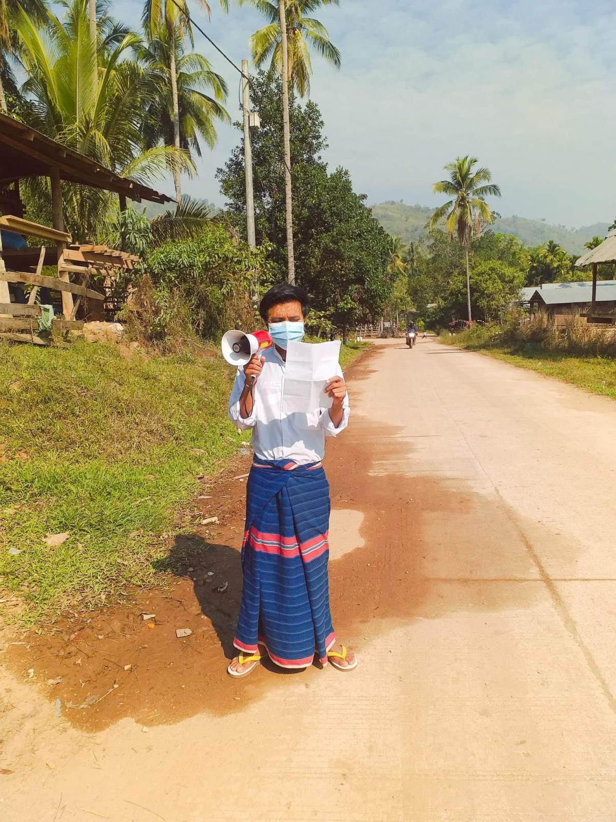 ထိုသို့ နှိုးဆော်ရာတွင် ပြန်ကြားရေးနှင့်ပြည်သူ့ဆက်ဆံရေးဦးစီးဌာနမှ ဝန်ထမ်းများက ပြည်သူ များအနေဖြင့် ကိုဗစ်-၁၉ရောဂါ ကူးစက်မှုမရှိစေရန်နှင့် ထိထိ ရောက်ရောက် ကာကွယ်နိုင်ရန် မိမိနေအိမ်များတွင်သာ နေထိုင်ကြရန်၊ အရေးကြီးကိစ္စကြောင့် ပြင်ပသို့ထွက်ခွာပါက နှာခေါင်း စည်းကို စနစ်တကျတပ်ရန်၊ နှာခေါင်းစည်း မတပ်သူများနှင့် တွေ့ဆုံခြင်း၊ စကားပြောခြင်း၊ ဈေးဝယ်ခြင်းမှ ရှောင်ကြဉ်ရန်၊ လူစုလူဝေးပြုလုပ်ခြင်း နှင့် သွားလာခြင်းများကို ရှောင်ကြဉ်ရန်၊ တစ်ခုခုကို ကိုင်တွယ်ပြီးတိုင်း လက်ကိုဆပ်ပြာနှင့် စက္ကန့် ၂၀ ကြာအောင် စနစ်တကျ ဆေးရန်နှင့် မိမိတို့၌ ရောဂါပိုးကူးစက်ခံရသည်ဟု သံသယရှိပါက နီးစပ် ရာ ကျန်းမာရေး ဌာနများသို့ ဆက်သွယ်၍ မပျက်မကွက် စစ်ဆေးကုသခံယူရန် စသည့် ကိုဗစ်-၁၉ရောဂါ ကာကွယ်ရေး အသိ ပေးချက်များနှင့် ကိုဗစ်-၁၉ ရောဂါကို ထိထိရောက်ရောက် ကာကွယ်နိုင်ရန်အတွက် ပြည်သူများ အနေဖြင့် ကိုဗစ်-၁၉ရောဂါ ကာကွယ်ဆေး မဖြစ်မနေ ထိုးနှံကြရန်ကို (Hand Speaker) ဖြင့် လိုက်လံနှိုးဆော်ခဲ့ကြောင်း သိရသည်။