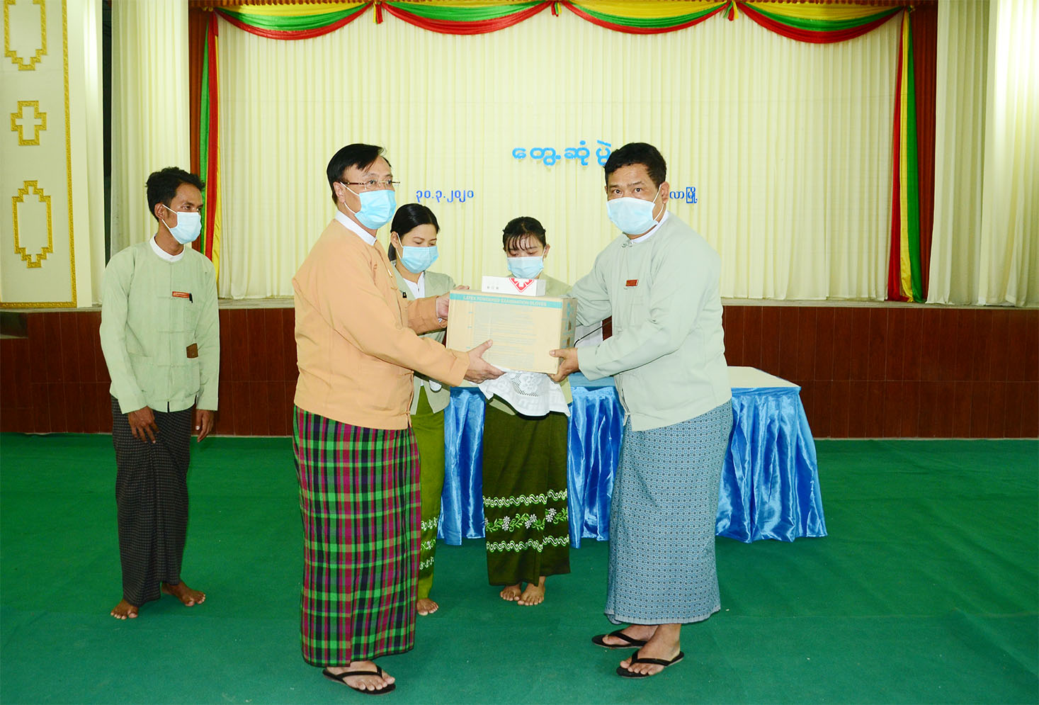 မန္တလေးတိုင်းဒေသကြီးအစိုးရအဖွဲ့ဝင် စိုက်ပျိုးရေး၊ မွေးမြူရေးနှင့် ဆည်မြောင်းဝန်ကြီး ဒေါက်တာစိုးသန်းသည် ယမန်နေ့မွန်းလွဲ ၁ နာရီ ၃ဝ မိနစ်က မိတ္ထီလာခရိုင်အတွင်းရှိ ခရိုင်နှင့်မြို့ နယ်များမှ COVID-19 ရောဂါ ကြိုတင်ကာကွယ် ထိန်းချုပ်ကုသရေးလုပ်ငန်း ကော်မတီ ဥက္ကဋ္ဌများ၊ အတွင်းရေးမှူးများနှင့် တွေ့ဆုံ၍ ထောက်ပံ့ရေးပစ္စည်းများကို မိတ္ထီလာမြို့နယ် ကန်တော် မင်္ဂလာခန်းမတွင် ပေးအပ်ခဲ့ကြောင်းသိရသည်။