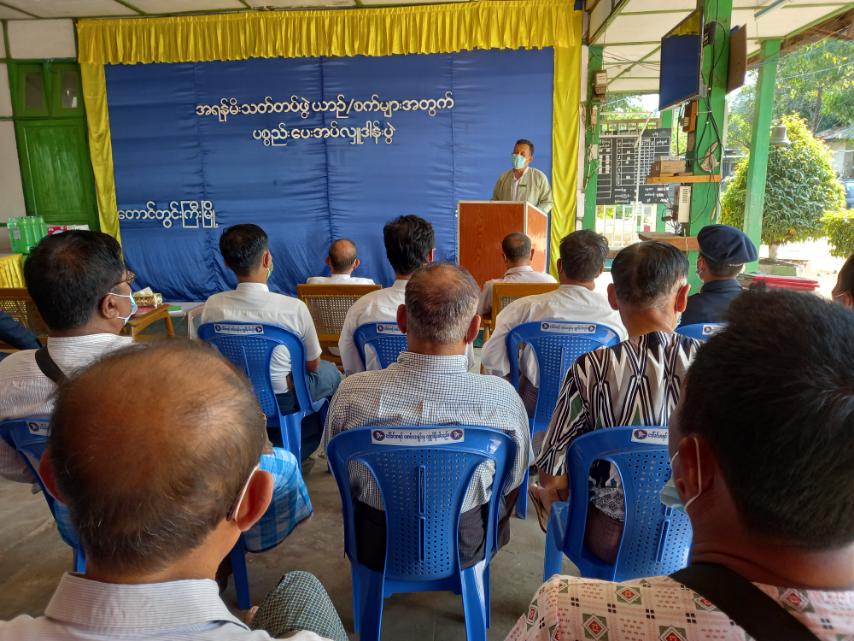 အခမ်းအနားတွင် မြို့နယ်စီမံအုပ်ချုပ်ရေးအဖွဲ့ဥက္ကဋ္ဌ မြို့နယ်အုပ်ချုပ်ရေးမှူး ဦးကျော်ခိုင်ထွန်းက အဖွင့်အမှာ စကားပြောကြားပြီး မြို့နယ်မီးသတ်ဦးစီးဌာနဦးစီးမှူး ဦးစောမောင်နှင့် မြို့မိမြို့ဖဦးစံသိန်းတို့က မြို့နယ် အတွင်းရှိ ရပ်ကွက်များတွင် ဖွဲ့စည်းထားရှိသော အရန်မီးသတ်တပ်ဖွဲ့ယာဉ်နှင့် စက်များအတွက် ပစ္စည်းများ ထောက်ပံ့ပေးအပ်ရခြင်းနှင့် ပတ်သက်၍ ရှင်းလင်းပြောကြားသည်။
