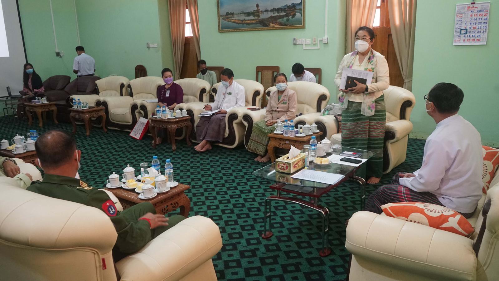 အလားတူ ကရင်ပြည်နယ်ဝန်ကြီးချုပ်သည် မတ်လ ၃ ရက်နေ့ နံနက် ၁၀ နာရီခန့်က မြန်မာနိုင်ငံ ကြက်ခြေနီအသင်း ဒုတိယအထွေထွေအတွင်းရေးမှူး ဒေါက်တာညိုညိုဝင့်နှင့်အဖွဲ့အား ပြည်နယ် အစိုးရအဖွဲ့ရုံး ဧည့်ခန်းမ၌ လက်ခံတွေ့ဆုံသည်။