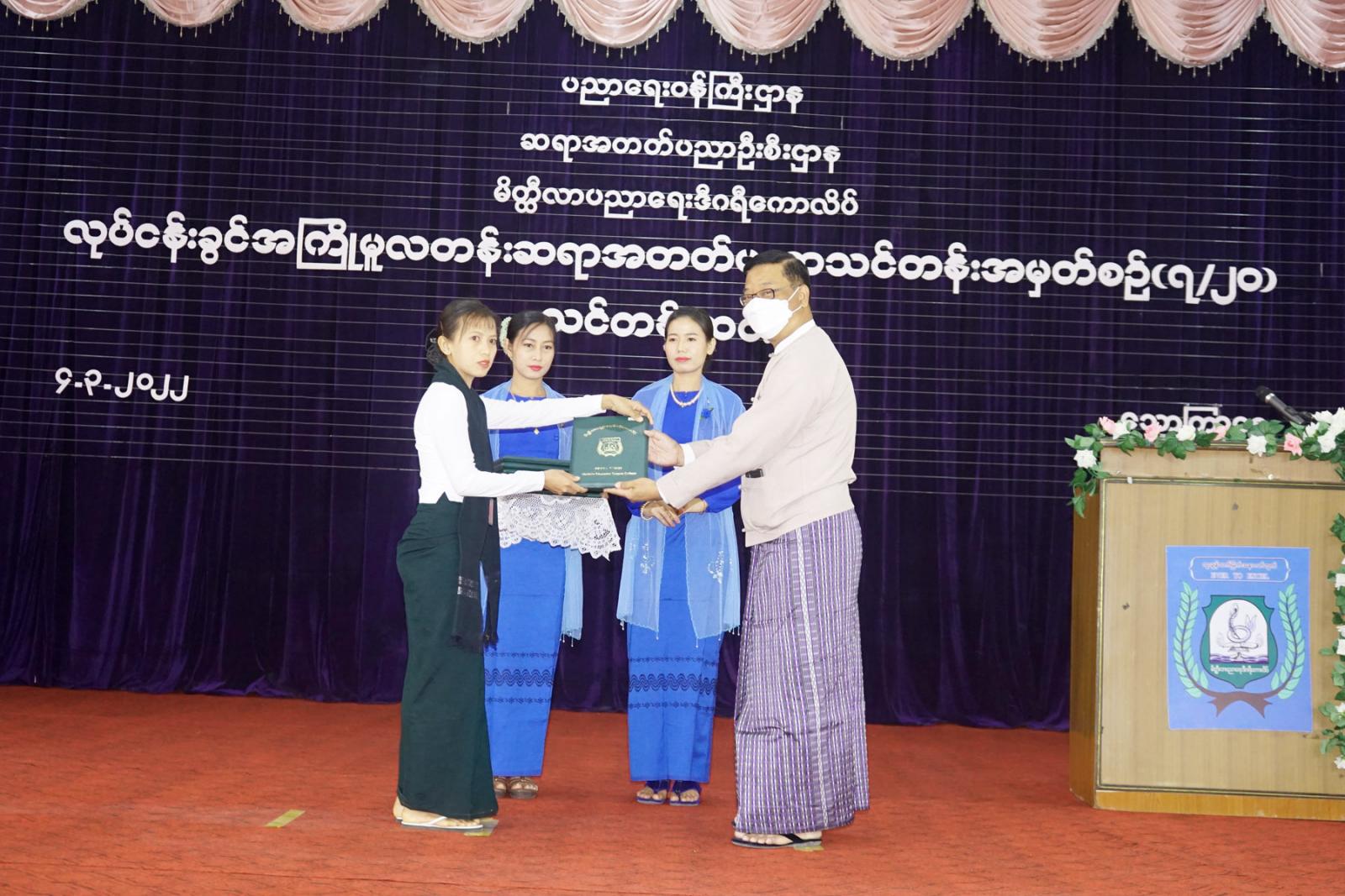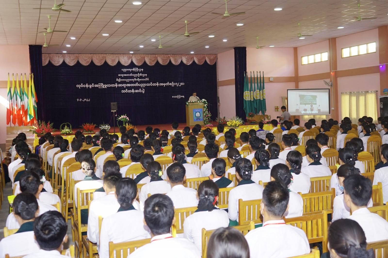 သင်တန်းဆင်းပွဲတွင် တိုင်းဒေသကြီးအစိုးရအဖွဲ့ လူမှုရေးရာဝန်ကြီး ဦးယဉ်ထွေးက အဖွင့်အမှာစကား ပြောကြားရာတွင် ဆရာအတက်သင်အရည်အသွေး ပြည့်ဝပြီး ဆရာကောင်းဆရာမွန်များအဖြစ် ကောင်းစွာသင်ကြားလေ့ကျင့်အောင်မြင်ခဲ့ကြကြောင်း အသိအမှတ်ပြုပြီး ဆရာစိတ်ဓာတ်ကို မြှင့်တင်ပေးခဲ့သည့် အခမ်းအနားဖြစ်ပါကြောင်း၊ ဆရာဆရာမဖြစ်တဲ့ မောင်တို့မယ်တို့ဟာ ကောင်း မြတ်သော စိတ်စေတနာ အရင်းခံပြီး ဝါသနာ၊ စေတနာနဲ့ အနစ်နာခံတက်သော ပညာရေး ဝန်ထမ်းများအဖြစ် မြန်မာ့လူ့ဘောင်မှာ ဆရာဂုဏ်ရောင် အစဉ်ထွန်းပြောင်အောင် စွမ်းဆောင်ကြစေလိုကြောင်း၊ ကျောင်းသားကျောင်းသူများ အေးချမ်းစွာ ပညာသင်ယူနိုင်ရေး ပတ်ဝန်းကျင်ကောင်းများ ဖန်တီးပေးနိုင်ရန်နှင့် အခြေခံပညာ အရည်အသွေးမြင့်မားလာစေရေး ဆရာဆရာမများ ကျောင်းသားကျောင်းသူများ ပူးပေါင်းဆောင်ရွက်ရန် နိုင်ငံတော်မှာ ပညာတက်များ ပေါများအောင် ဆောင်ရွက်နိုင်ဖို့ နိုင်ငံတော်ဝန်ကြီးချုပ်က အမြဲလမ်းညွှန် ဆောင်ရွက်လျက်ရှိပါကြောင်း၊ သင်တန်းဆင်း ဆရာဆရာများအနေဖြင့် ကျောင်းသားကျောင်းသူများကို သက်ဆိုင်ရာဘာသာရပ်များ သင်ကြားပေးရုံသာမက ဘဲ မင်္ဂလာတရား၊ ဂါတဝတရားနဲ့အညီ ပြောဆို ဆက်ဆံ တက်စေရေး၊ မြန်မာ့ယဉ်ကျေးမှုအစဉ်အလာများ ဆက်လက်ထိန်းသိမ်းရေးအတွက် အလေးထား ဆောင်ရွက်ပေးကြစေလိုကြောင်း၊ လူတိုင်းစည်းကမ်းလိုက်နာမှ တိုးတက်မှာဖြစ်သလို ကျောင်းသားကျောင်းသူများ စည်းကမ်းကောင်းမွန်အောင် လေ့ကျင့်ပေး ကြစေလိုကြောင်း၊ တီထွင်ဖန်းတီမှု၊ ပူးပေါင်း ဆောင်ရွက်တက်မှု၊ နိုင်ငံသားကောင်းပီသမှု၊ အခက်အခဲများကို ရင်ဆိုင်ဖြေရှင်းတက်မှု စသည့် ၂၁ ရာစု ကျွမ်းကျင်မှုစွမ်းရည်များ ရရှိစေရန်အတွက် သင်ရိုးများကို ပြုပြင်ပြောင်းလဲပြီး သင်ယူနည်းများကိုလည်း သင်တန်းများပို့ချကာ ပညာရေးကဏ္ဍမြင့်မားလာ အောင် နိုင်ငံတကာအဆင့်မီအောင် ဆောင်ရွက် လျက်ရှိပါကြောင်း ပြောကြားခဲ့သည်။