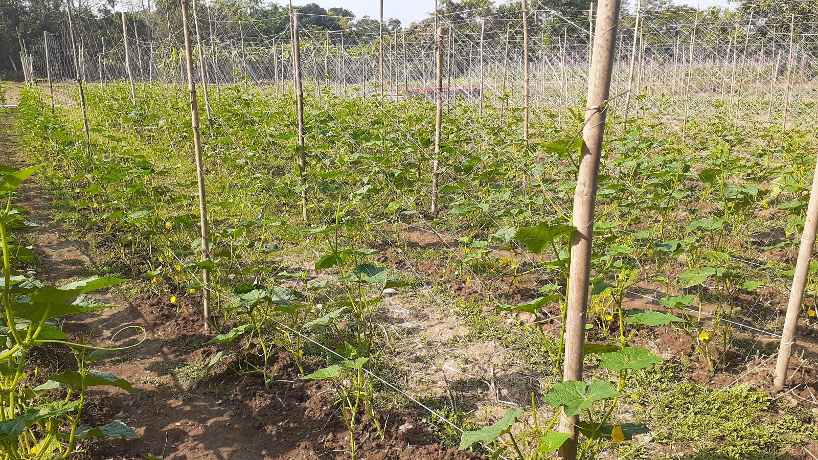 “သခွားပင်များကို စပါးရိတ်ပြီးအချိန် စစိုက်ပျိုးတယ်၊ အပင်ငယ်တဲ့အချိန်မှာ ပိုးမကျအောင် ဂရုစိုက်ရတယ်၊ မြေဩဇာ ကြွေးရတယ်၊ ရေပုံမှန်လောင်းရတယ်၊ စစိုက်ပျိုးတဲ့အချိန်ကနေ သီးတဲ့အထိအချိန်က တစ်လလောက် ကြာပါတယ်။ အသီးသီးချိန်ကတော့ (၂)လလောက် ခူးလို့ရပါတယ်၊ ပထမစစိုက်တာ ကတော့ ဘောင်(၁၅)ဘောင်၊ တစ်ဘောင်ကိုတော့ အပင်(၃၀)ကျော်လောက်ရှိတယ်။ လယ်ကွက်ထဲမှာ စိုက်တာဖြစ်တဲ့အတွက်ကြောင့် ပထမစိုက်ထား အပင်အသီးသီး တာနဲ့ တခြားနေရာမှာ ဘောင်ဖော်ပြီး ထပ်စိုက်ပျိုးပါတယ်၊ ပထမစိုက်ထားတဲ့ အသီးကုန်ရင် နောက်စိုက်တဲ့ အပင်ကအသီးသီးလာပါတယ်။ ကန်စွန်းရွက်၊မုန်လာ၊ ရွှေဖရုံတို့ကိုလဲ စိုက်ပျိုးပါတယ်၊ အသီးကိုတော့ (၄)ရက်တစ်ခါ (၇)ရက်တစ်ခါ ခူးပြီး ရောင်းလို့ရတယ်။ အသီးအရွက်တွေကို ပုံမှန်ရောင်းလို့ရတဲ့အတွက်ကြောင့် မိသားစုစားဝတ်နေရေး အတွက် အဆင်ပြေကြောင်း” သခွားစိုက် တောင်သူ ဦးကျော်ဝင်းက ရှင်းပြသည်။