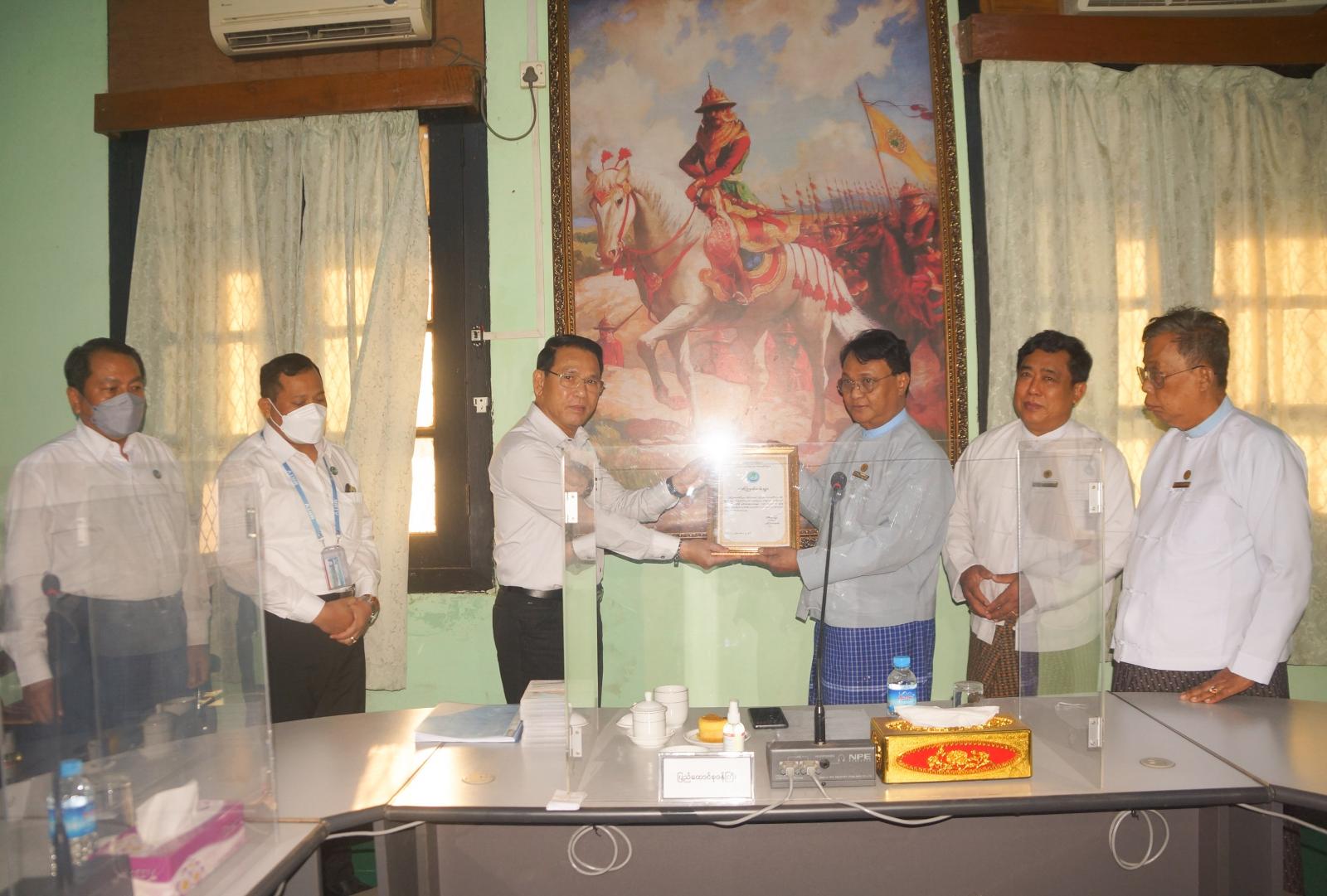 ယင်းနောက်ပြန်ကြားရေးနှင့်ပြည်သူ့ဆက်ဆံရေးဦးစီးဌာနရှိစာကြည့်တိုက်(၄၁၇)တိုက်အတွက်ငွေကျပ် ၂၅ သိန်းတန်းဖိုးရှိ သတင်းမီဒီယာပုံရိပ်မှတ်တမ်းစုံ၊ စာတမ်းများစာအုပ်(၄၁၇)အုပ်ကိုပေးအပ်လှူဒါန်းရာ၊ ပြည်ထောင်စုဝန်ကြီး ဦးမောင်မောင်အုန်းက လက်ခံရယူပြီး ဂုဏ်ပြု မှတ်တမ်းလွှာပြန်လည်ပေးအပ်သည်။