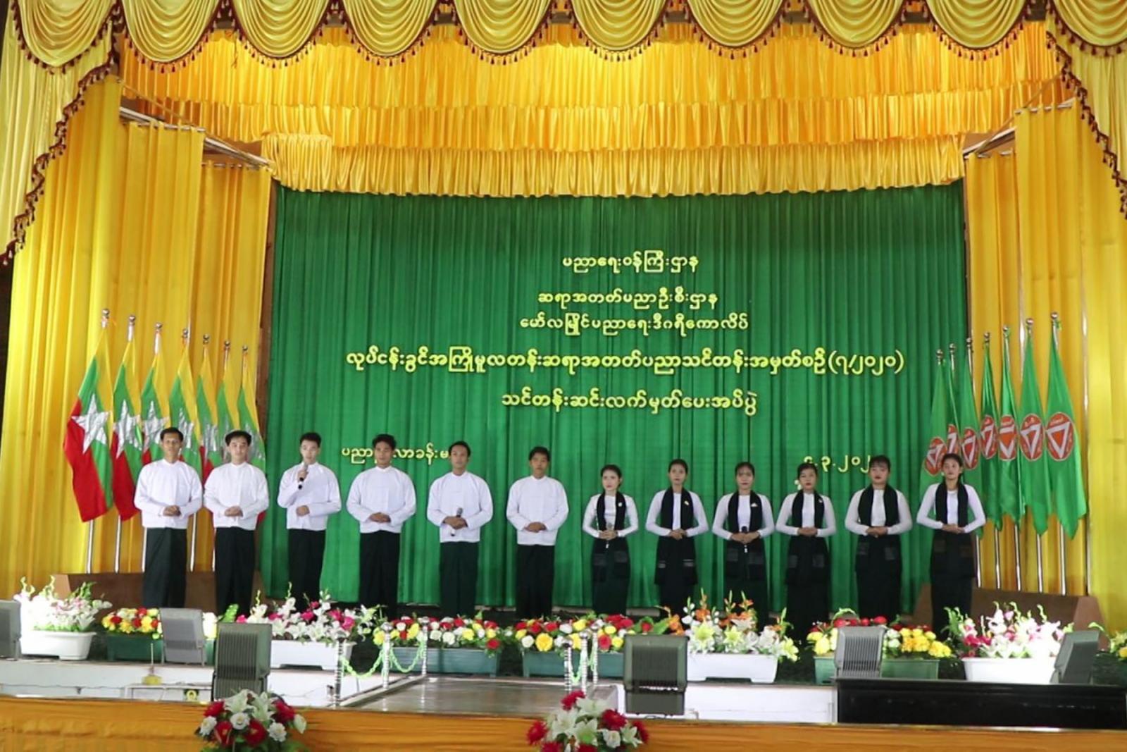 မွန်ပြည်နယ်တွင် ပညာရေးကဏ္ဍ ဖွံ့ဖြိုးတိုးတက်စေရေး၊ အရည်အချင်း ပြည့်၀သော ကျောင်း သား၊ကျောင်သူများ ပေါ်ထွန်းလာစေရေးအတွက် မတ် ၄ နံနက်ပိုင်းက မော်လမြိုင် ပညာရေး ဒီဂရီကောလိပ်၊ ပညာညီလာခန်းမတွင် ၂၀၂၁-၂၀၂၂ ပညာသင်နှစ် လုပ်ငန်းခွင်အကြို မူလတန်း ဆရာအတတ်ပညာသင်တန်း အမှတ်စဉ် (၇/၂၀၂၀) သင်တန်းဆင်းပွဲ အခမ်းအနား ကျင်းပသည်။
