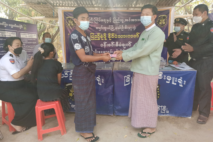 ရမည်းသင်းခရိုင်၊ ပျော်ဘွယ်မြို့နယ်၌ လူဝင်မှုကြီးကြပ်ရေးနှင့် ပြည်သူ့အင်အားဝန်ကြီးဌာန၊ မြို့နယ်ဦးစီးမှူးရုံးမှ ပန်းခင်းစီမံချက်ဖြင့် နိုင်ငံသားစိစစ်ရေးကတ်မရှိသူများ အား နိုင်ငံသားစိစစ်ရေးကတ် များ ဆောက်ရွက်ပေးလျက်ရှိရာ ယနေ့ နံနက်(၉) နာရီခွဲက နိုင်ငံသားစိစစ်ရေးကတ်ပေးအပ်ပွဲကို အဆိုပါရုံးတွင် ကျင်းပပြုလုပ်သည်။