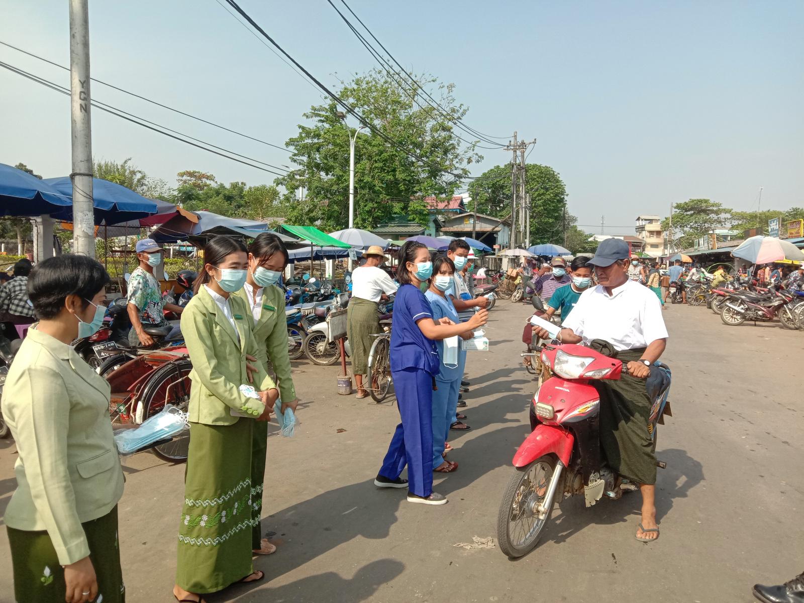 Mask Campain ပြုလုပ်ရာတွင်၊ ကိုဗစ်-၁၉ ရောဂါ ကာကွယ်ထိန်းချုပ်ကုသရေး ကော်မတီ၀င်များ၊ မြို့နယ် အထွေထွေအုပ်ချုပ်ရေး ဦးစီးဌာနမှ၀န်ထမ်းများ၊ မြို့နယ်ကျန်းမာရေးဌာနမှ ကျန်းမာရေးဆရာ၊ ဆရာမများ မြို့နယ်ရဲတပ်ဖွဲ့၀င်များ၊ မြို့နယ်စည်ပင်သာယာရေးအဖွဲ့၊ မီးသတ်တပ်ဖွဲ့၀င်များ၊ ကြက်ခြေနီတပ်ဖွဲ့၀င်များ၊ ဌာနဆိုင်ရာများပူးပေါင်း၍ mask campaign ပြုလုပ်ဆောင်ရွက်ခဲ့ကြောင်း သိရသည်။