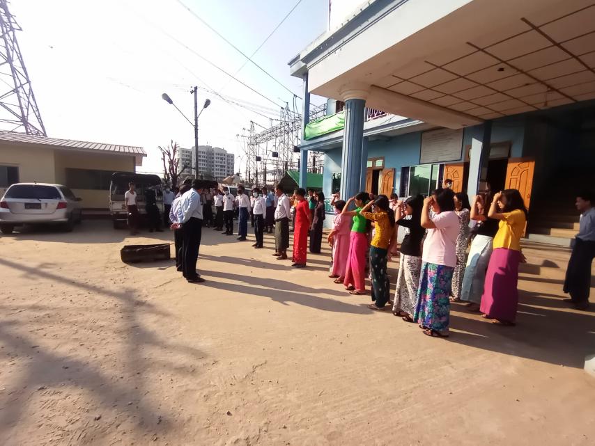 ယခုအခါ ပူပြင်းခြောက်သွေ့သော ရာသီရောက်လာပြီဖြစ်၍ မီးဘေးအန္တရာယ်မဖြစ်ပေါ်စေရေးအတွက် ရန်ကုန် မြောက်ပိုင်းခရိုင်၊ လှိုင်သာယာ (အရှေ့ပိုင်း)မြို့နယ်တွင် မီးဘေးကြိုတင် ကာကွယ်ရေးလုပ်ငန်းများအား မြို့နယ် မီးသတ်ဦးစီးဌာနမှ တပ်ဖွဲ့ဝင်များက အရှိန်အဟုန်မြှင့် ဆောင်ရွက်လျက်ရှိရာ မတ်လ (၇) နေ့ နံနက်ပိုင်းက လှိုင်သာယာ (အရှေ့ပိုင်း) မြို့နယ်အတွင်းရှိ ဈေးများ၊ စက်ရုံ၊ အလုပ်ရုံများ၊ လျှပ်စစ်ရုံးများတွင် အသိပညာပေး သရုပ်ပြလုပ်ငန်းများအား ကွင်းဆင်း စစ်ဆေးခြင်းတို့ကို ဆောင်ရွက်ခဲ့သည်။