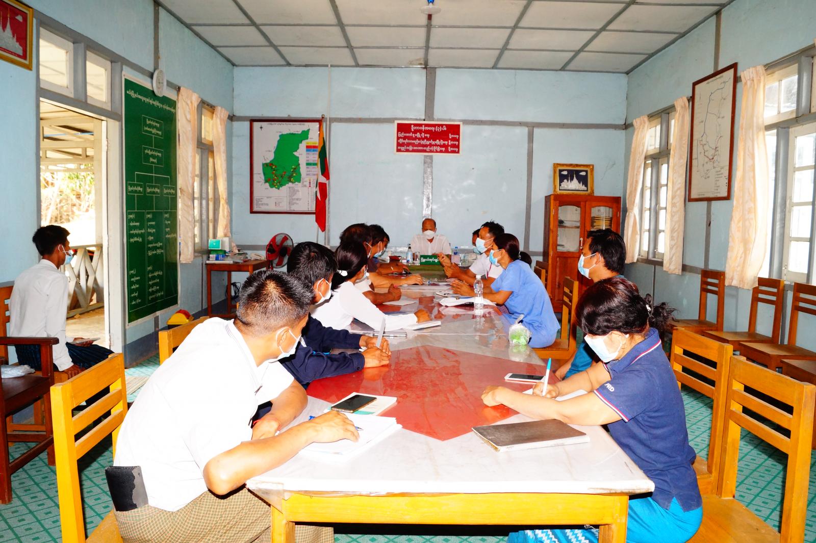 ထို့နောက် တက်ရောက်လာသည့် ဌာနဆိုင်ရာများက ရပ်ကွက်၊ ကျေးရွာအသီးသီးရှိ ကိုဗစ် ကာကွယ်ဆေး ထိုးနှံရန် ကျန်ရှိသူများအား ကိုဗစ်ကာကွယ်ဆေးထိုးနှံမှု အကြိမ်ပြည့်ခံယူရေးအတွက် ကျေးရွာများအရောက် အသိပေးနှိုးဆော် ဆောင်ရွက်ရေးနှင့် ကျန်းမာရေးဌာနက ကိုဗစ်-၁၉ ကာကွယ်ဆေးထိုးနှံခြင်း၏ အကျိုးကျေးဇူးများ အသိပညာပေးရေး တို့ကို တင်ပြဆွေးနွေးရာ မြို့နယ်အုပ်ချုပ်ရေးမှူး ဦးအောင်ကျော်သန်းက လိုအပ်ချက်များကို ဖြည့်စွက်ဆွေးနွေး ခဲ့ကြောင်း သိရသည်။