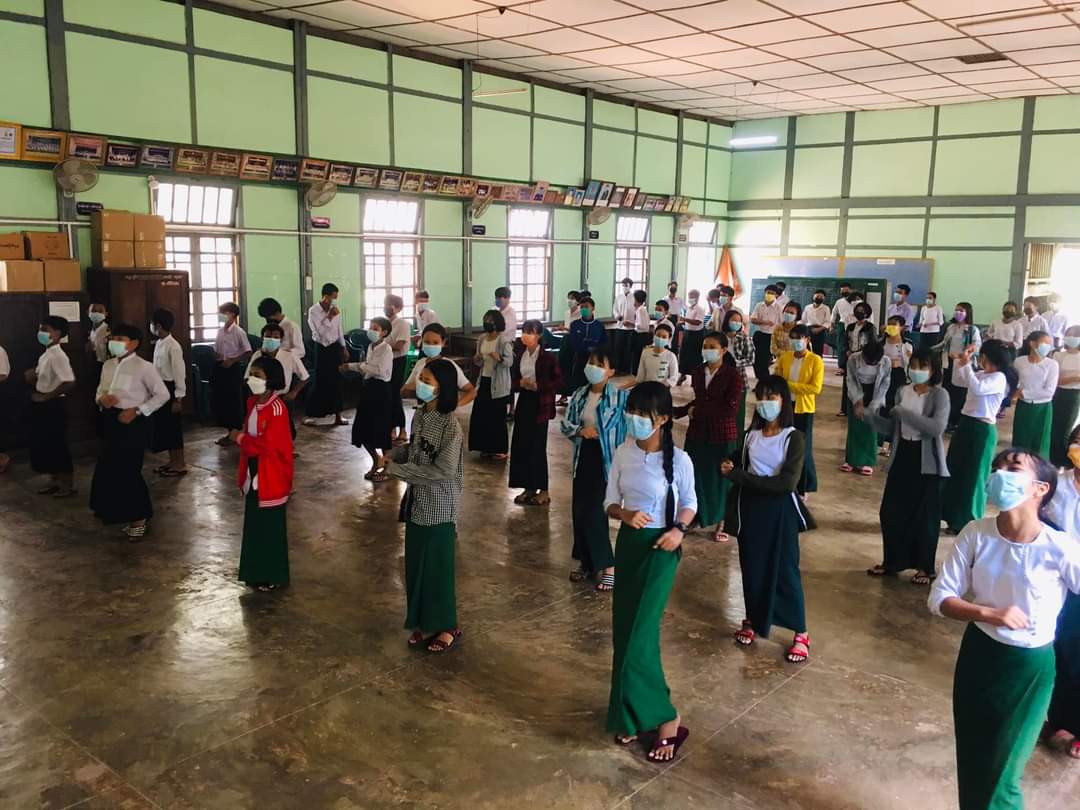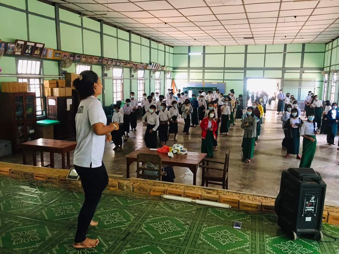 ထို့နောက်မြို့နယ်အားကစားမှူးမှ Physical Fitness Dance ဂီတနှင့် ကိုယ်ခန္ဓာလှုပ်ရှားမှု တပြိုင်နက်လှုပ်ရှားဆောင်ရွက်ရမှု အဆင့်ဆင့်အား Exercise is Medicine (PFD) လေ့ကျင့် လှုပ်ရှားမှုများအား ကိုယ်တိုင်လက်တွေ့ဦးဆောင်သရုပ်ပြသပြီး ကျောင်းသားကျောင်းသူ များအား ပါဝင်လှုပ်ရှား ဆောင်ရွက် စေခဲ့ကြောင်း သိရသည်။
