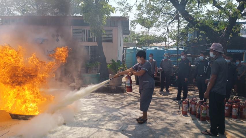 ထိုသို့ ဆောင်ရွက်ရာတွင် စက်ရုံရှိဝန်ထမ်း (၂၀) ဦးအား မီးလောင်မှုဖြစ်ပေါ်ပါက လျင်မြန်စွာမီးငြှိမ်းသတ်နိုင်ရေးနှင့် မီးငြှိမ်းသတ်သည့် နည်းလမ်းများ စနစ်တကျ ရှိစေရေး၊ မီးသတ်ဆေးဘူး ကိုင်တွယ်အသုံးပြုပုံတို့ကို ရှင်းလင်းအသိပညာပေးဟောပြောခဲ့ပြီး မီးသတ်ဆေးဘူး၊ မီးချိတ်၊ မီးကပ်၊ သဲပုံး၊ ရေပုံးများကို ဆောင်ရွက် ထားရှိရန်နှင့် မီးသတ်ဆေးဘူး လက်တွေ့အသုံးပြုပုံနှင့် လက်တွေ့မီးငြှိမ်းသတ်မှု သရုပ်ပြသခြင်းများ ဆောင်ရွက်ပေးခဲ့ကြောင်း မြို့နယ်မီးသတ်ဦးစီးမှူးရုံးမှ သိရ သည်။