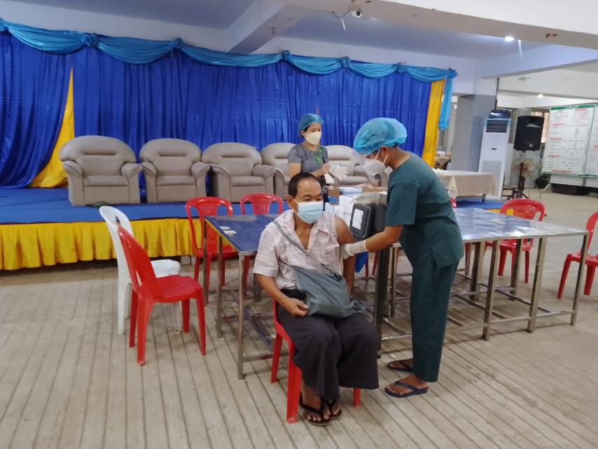 ထို့အပြင်ကိုဗစ်-၁၉ရောဂါ ကာကွယ်ဆေးထိုးနှံရာသို့ လာရောက်ထိုးနှံကြသူများအား မြို့နယ်ကြက်ခြေနီသူနာပြုတပ်ဖွဲ့ဝင်များက အောက်ဆီဂျင်တိုင်းတာခြင်း၊ ကိုယ်အပူချိန်တိုင်းတာခြင်းတို့ကို ဆောင်ရွက်ပြီးကျန်းမာရေးလမ်းညွှန်ချက်များနှင့်အညီ၊မြို့နယ် ကျန်းမာရေးဝန်ထမ်းများကစနစ်တကျကာကွယ်ဆေးများထိုးနှံပေးလျက်ရှိသည်။