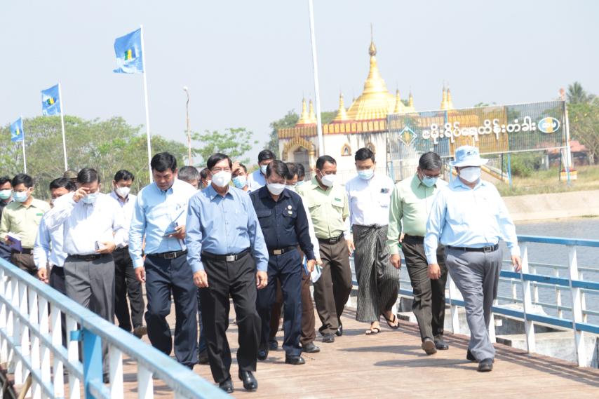 ရန်ကုန်တိုင်းဒေသကြီးအစိုးရအဖွဲ့ ဝန်ကြီးချုပ် ဦးစိုးသိန်းနှင့်အစိုးရအဖွဲ့ဝင်များဖြစ်သော စီးပွားရေးရာဝန်ကြီး ဦးအောင်သန်းဦး၊ လူမှုရေးရာဝန်ကြီး ဦးအောင်ဝင်းသိန်း၊ ရန်ကုန်မြို့တော် ဝန်ဦးဗိုလ်ဌေး၊ တိုင်းဒေသကြီးအစိုးရအဖွဲ့ညွှန်မှူး ဦးလွင်ကိုဦး၊ ရန်ကုန် အရှေ့ပိုင်းခရိုင် အုပ်ချုပ်ရေးမှူး ဦးထူးလွင်တို့သည် ယနေ့နံနက် ၁၀ နာရီအချိန်က ဒဂုံမြို့သစ် (အရှေ့ပိုင်း) မြို့နယ်စစ်ပင် တောင် ရပ်ကွက်အမှတ် ၇ လမ်းမကြီးဘေးပေါက်ကုန်းကွင်းငမိုးရိပ်ရေထိန်းတံ ခါးသို့ရောက်ရှိပြီး နွေစပါးနှင့်မြို့ရေပေးဝေရေး၊ မိုးရာသီ ရေကြီးရေလျှံမှုမဖြစ် ပေါ်စေရေးနှင့် ရေငံဝင်ရောက်မှုမရှိစေရေး ဆောင်ရွက်ထားရှိမှုအခြေအနေများအား ကြည့်ရှုစစ်ဆေးခဲ့ပြီး လိုအပ်သည်များလမ်းညွန်မှာကြားခဲ့ကြောင်း သိရသည်။