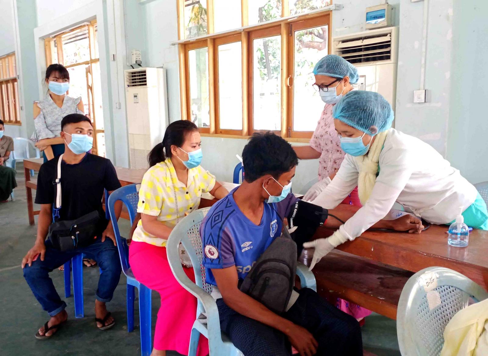 ထိုသို့ ကိုဗစ်-၁၉ ရောဂါကာကွယ်ဆေးများထိုးနှံရာတွင် စေတနာ့ဝန်ထမ်းများက ကာကွယ် ဆေးထိုးနှံရန်လာရောက်ကြသည့် အသက် ၁၈ နှစ်အထက်ရှိသူများ၊ ရဟန်းသံဃာတော်များ၊ ဘိုး/ဘွား များ၊ ဌာနဆိုင်ရာဝန်ထမ်းများနှင့် ပြည်သူများကို သတ်မှတ်နေရာများသို့ လိုက်ပါပို့ဆောင်ပေးခြင်း၊ အထွေထွေအုပ်ချုပ်ရေးဦးစီးဌာနမှဝန်ထမ်းများက စာရင်းမှတ်တမ်းရေးသွင်း ကောက်ယူခြင်း၊ ကျန်းမာ ရေးဌာနမှဝန်ထမ်းများက ကိုယ်အပူချိန်တိုင်းတာပေးခြင်း၊ သွေးပေါင်ချိန်တိုင်းတာပေးခြင်းတို့ကို စနစ် တကျဆောင်ရွက်ပေးပြီး ပုံမှန်အခြေအနေရှိသူများသာ ကာကွယ်ဆေးများကို ထိုးနှံပေးလျက်ရှိသည်။