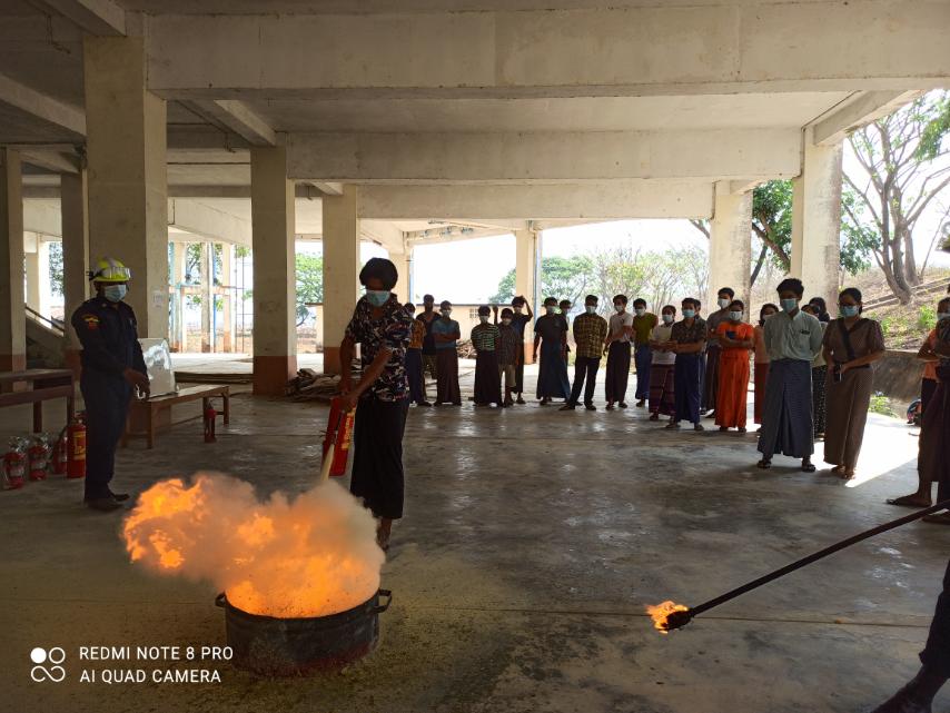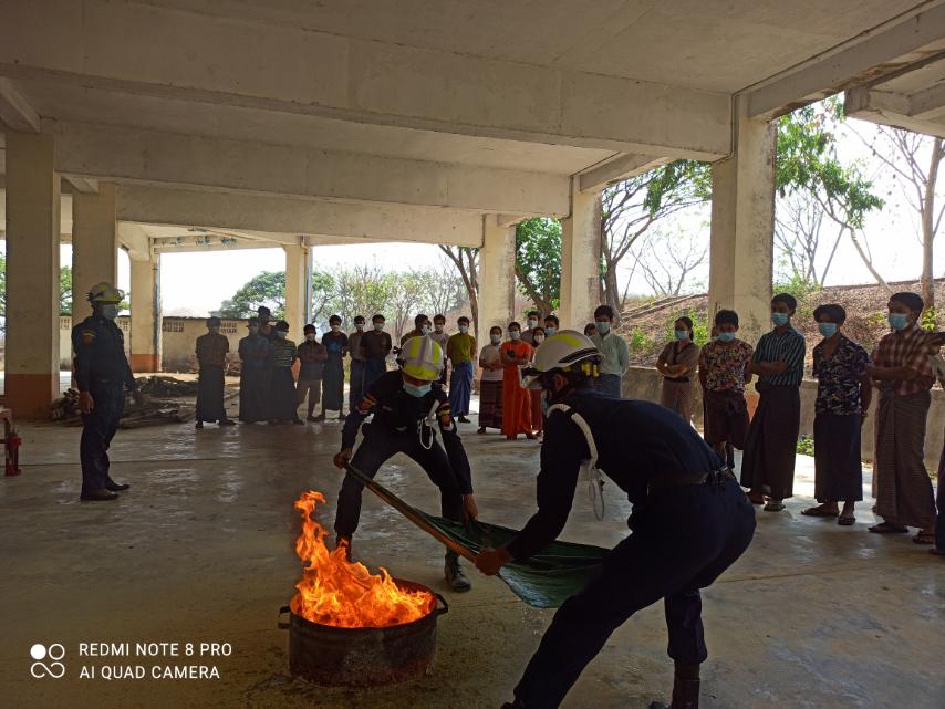 အဆိုပါသရုပ်ပြပွဲတွင် မြို့နယ်မီးသတ်စခန်းမှ မီးသတ်တာဝန်ခံ ဦးမြတ်သူထိုက် ဦးဆောင်၍ တပ်ဖွဲ့ဝင်(၅)ဦးတို့က ဆရာ/ဆရာမများ၊ ကျောင်းသားကျောင်းသူများအား ကျောင်းအတွင်း မီးဘေးလုံခြုံရေး စီမံချက်ပါအတိုင်း မီးသတ်ပစ္စည်းကရိယာများ လက်တွေ့အသုံပြုနိုင်ရန်နှင့် မီးငြှိမ်းသတ်နည်း အဆင့်ဆင့်ကို ချပြရှင်းလင်းဆွေးနွေးခဲ့ကြောင်းနှင့် ရေစိုဝတ်ဖြင့်မီးငြှိမ်းသတ်နည်း၊ဆေးဘူးသုံးစွဲနည်း၊မီးဘေးကြိုတင် ကာကွယ်ရေးသုံးပစ္စည်းဖြင့် မီးငြှိမ်းသတ်မှုအား လက်တွေ့သရုပ်ပြဆောင်ရွက်ခဲ့ပြီး ဇာတ်တိုက်လေ့ကျင့်ခြင်းများ ဆောင်ရွက်ခဲ့ကြောင်း သိရသည်။
