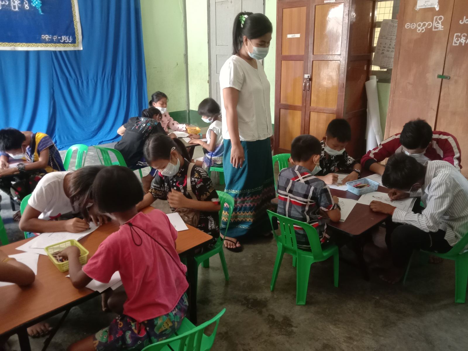 ထို့နောက်Sunday-School ကလေးငယ်များအား စာကြည့်တိုက်ကို အသုံးပြုတတ်စေရန်နှင့် အနုပညာနှင့် ပတ်သက်၍ သိမြင်ခံစားပြီး ကိုယ်တိုင် ပုံဖော် တတ်စေရန်ရည်ရွယ်၍ ဆေးရောင် ခြယ်ပြိုင်ပွဲကို ကျင်းပပေးကာSunday-Schoo ကလေးငယ် (၁၈)ဦးက ဆေးရောင်ခြယ်ပြိုင်ပွဲ တွင် ပါဝင်ယှဉ်ပြိုင်ခဲ့ကြကြောင်း သိရသည်။