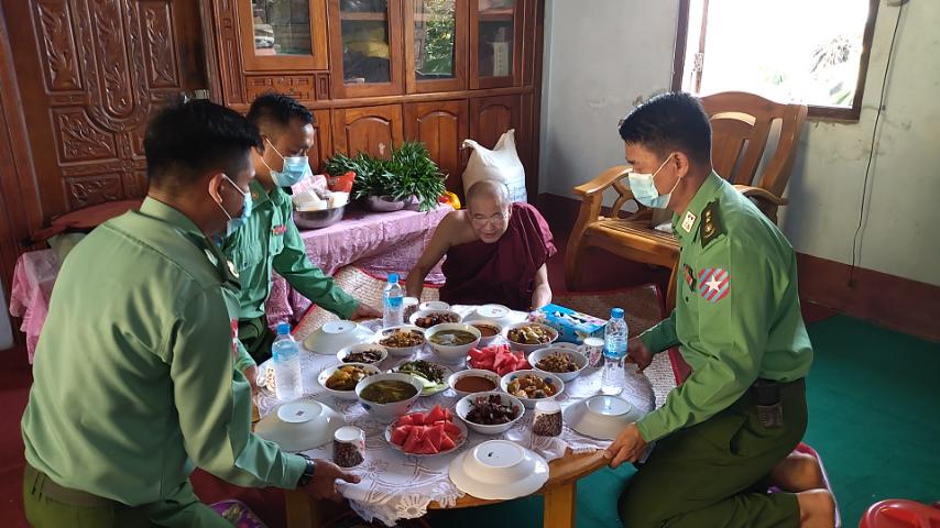 ကရင်ပြည်နယ်၊ ဘားအံခရိုင်၊ လှိုင်းဘွဲမြို့နယ် ကျိုက်မုရောဘုန်းတော်ကြီးကျောင်းတွင် ကျိုက်မုရောစေတီတော်မြတ်ကြီး၏ ဗုဒ္ဓပူဇနိယပွဲတော် အသံမစဲမဟာပဌာန်း ရွတ်ဖတ်ပူဇော်သော ရဟန်း၊ သံဃာများအတွက် နေ့ဆွမ်းနှင့် ဆွမ်းဆန်၊ဆီ၊လှူဖွယ် ပစ္စည်းများ ဆက်ကပ်လှူဒါန်းခြင်းကို ယမန်နေ့က စစ်ဗျူဟာအခြေချ(လှိုင်းဘွဲ) စစ်ဗျူဟာမှူးနှင့် စစ်ဗျူဟာအခြေချ(လှိုင်းဘွဲ) ကွပ်ကဲမှု အောက်ရှိ တပ်ရင်း/တပ်ဖွဲ့ဝင်များက အဆိုပါ ဘုန်းတော်ကြီးကျောင်း၌ သွားရောက်ဆက်ကပ် လှူဒါန်းခဲ့ကြောင်း သိရှိရ သည်။