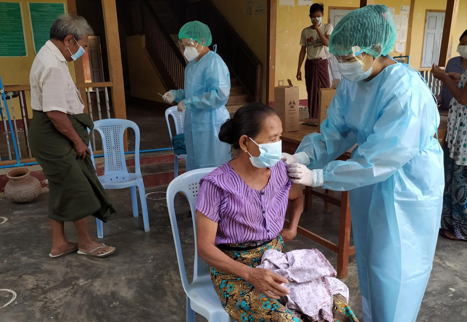 ယခု ထိုးနှံပေးလျက်ရှိသော ကာကွယ်ဆေးမှာ အိန္ဒိယနိုင်ငံမှ ထုတ်လုပ်သော Covid shleld အမျိုး အစားဖြစ်ပြီး အသက်(၁၈)နှစ်အထက်ပြည်သူများကို ဆေး တစ်လုံးလျှင် လူ (၁၁)ဦး 11 Dose ထိုးနှံလျက်ရှိပြီး အသက်(၁၈)နှစ် အထက်ပြည်သူ(၁၅၅၇၇၀)ဦးလျာထားပြီး (၅၀၇)ဦး ထိုးနှံပြီး စုစုပေါင်း (၇၉၈၁၄) ဦး ဆေးထိုးပြီး၊ကျန်ရှိသူ (၇၅၉၅၆)ဦး ဖြစ်ကြောင်း မြို့နယ်စီမံခန့်ခွဲမှု ကော်မတီထံမှ သိရ သည်။ ကိုဗစ်- ၁၉ကာကွယ်ဆေးထိုးခြင်းလုပ်ငန်းများကို မြို့နယ်ကျန်းမာ ရေး ဝန်ထမ်းများ၊ မြို့နယ် စီမံခန့်ခွဲမှု ကော်မတီ အဖွဲ့ဝင်များ၊ မြို့နယ်ကိုဗစ်-၁၉ ကာကွယ်ထိန်းချုပ်ရေး ကော်မတီအဖွဲ့ဝင်နှင့် လူမှုရေးအသင်းအဖွဲ့များ ပူးပေါင်း ဆောင်ရွက်ပေးခဲ့ကြောင်း သိရသည်။