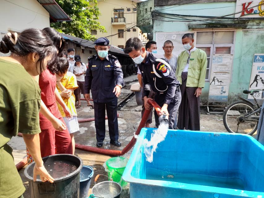 ရန်ကုန်တိုင်းဒေသကြီး၊ အရှေ့ပိုင်းခရိုင်၊ ဒဂုံမြို့သစ်(မြောက်ပိုင်း) မြို့နယ်အတွင်းရှိရေ အခက်ခဲရှိသော ပြည်သူများထံသို့ ယမန်နေ့ နံနက် ၉ နာရီခွဲအချိန်မှ စတင်၍ ရေဘောက်ဆာကားများ ဖြင့် ရေများပေးဝေလှူဒါန်းခဲ့ကြောင်းသိရသည်။