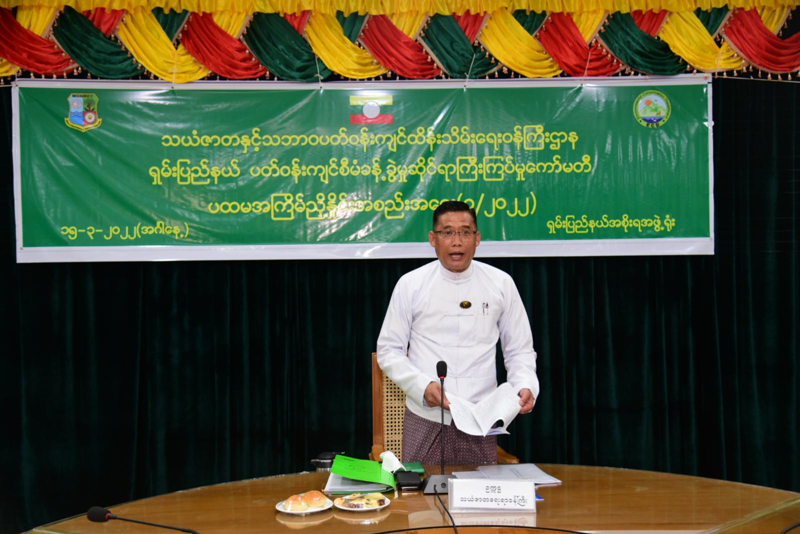 သယံဇာတနှင့် သဘာဝပတ်ဝန်းကျင် ထိန်းသိမ်းရေးဝန်ကြီးဌာန၊ ရှမ်းပြည်နယ် ပတ်ဝန်းကျင်စီမံခန့်ခွဲမှုဆိုင်ရာ ကြီးကြပ်မှုကော်မတီ ပထမအကြိမ်အစည်း အဝေး(၁/၂၀၂၂)ကို ယနေ့ မွန်းလွဲ(၂)နာရီက တောင်ကြီး မြို့ ရှမ်းပြည်နယ်အစိုးရရုံးအစည်းအဝေးခန်းမ၌ ကျင်းပသည်။