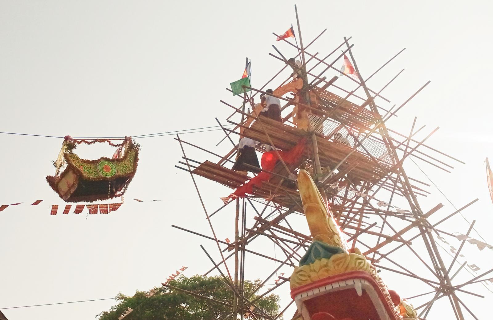 ရှေးဦးစွာ ကျိုက်ထိုဇောတိကာရုံကျောင်းတိုက်၊ မြို့နယ်သံဃနာယကအဖွဲ့ ဥက္ကဋ္ဌ ဆရာတော် ဘဒ္ဒန္တဣန္ဒာစရိယနှင့် ဆရာတော်၊သံဃာတော်များ၊ ဧည့်ပရိတ်သတ် အပေါငက စေတီတော် ကြီးအား လက်ယာရစ်လှည့်လည် ဖူးမြော်ကြည်ညိုပြီး မြို့နယ်သံဃနာယကအဖွဲ့ ဥက္ကဋ္ဌ ဆရာတော် ဘဒ္ဒန္တဣန္ဒာစရိယက ပရိတ်နံ့သာ ည်များ ပက်ဖျန်းကြကာ သီရိဓမ္မမဟာပဋ္ဌာန ဆုတောင်းပြည့်စေတီတော်မြတ်အား ထီးတော်တင်လှူခြင်း၊ ဗုဒ္ဓါဘိသေက အနေကဇာတင်လှူ ခဲ့ကြသည်။