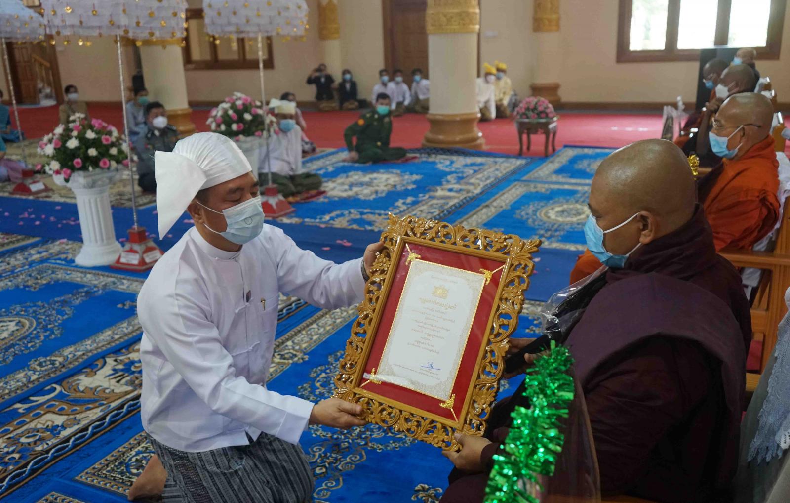 ဆက်လက်ပြီး ကယားပြည်နယ် အစိုးရအဖွဲ့၊ ပြည်နယ်ဝန်ကြီးချုပ်နှင့် ပြည်နယ်အစိုးရအဖွဲ့ဝင်ဝန်ကြီးများ၊ ဒေသကွပ်ကဲမှုစစ်ဌာနချုပ် (လွိုင်ကော်)၊ ဒေသကွပ်ကဲရေးမှူးတို့က ၂၀၂၂ခုနှစ် သာသနာတော်ဆိုင်ရာ ဘွဲ့တံဆိပ်တော်များ ချီးမြှင့်ခြင်းခံရသည့် ဆရာတော်သံဃာတော် ရှင်သူမြတ်များထံ ဘွဲ့တံဆိပ်တော်များနှင့် လှူဖွယ်ဝတ္ထုပစ္စည်းများကို ဆက်ကပ်ပူဇော်လှူဒါန်းခဲ့သည်။