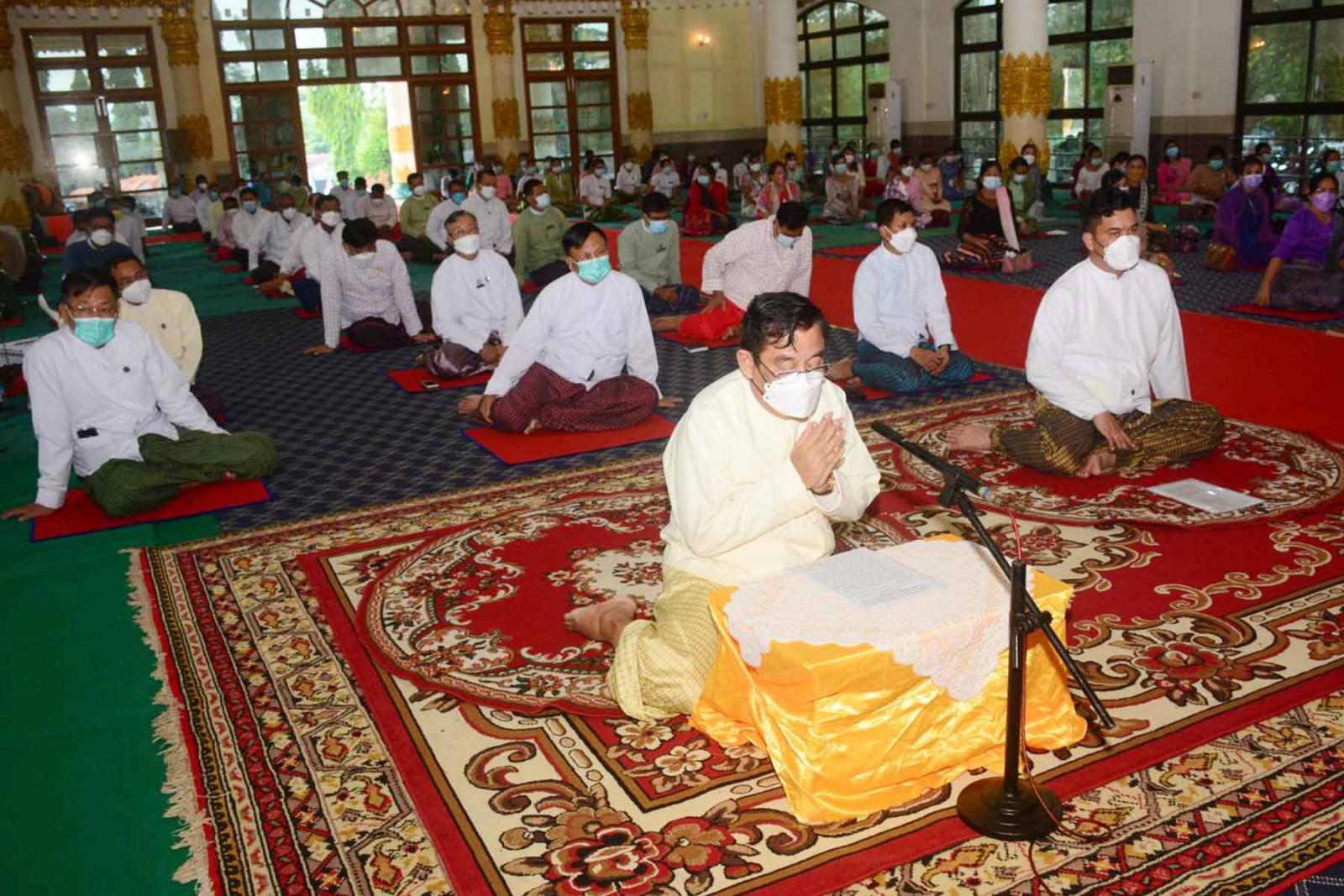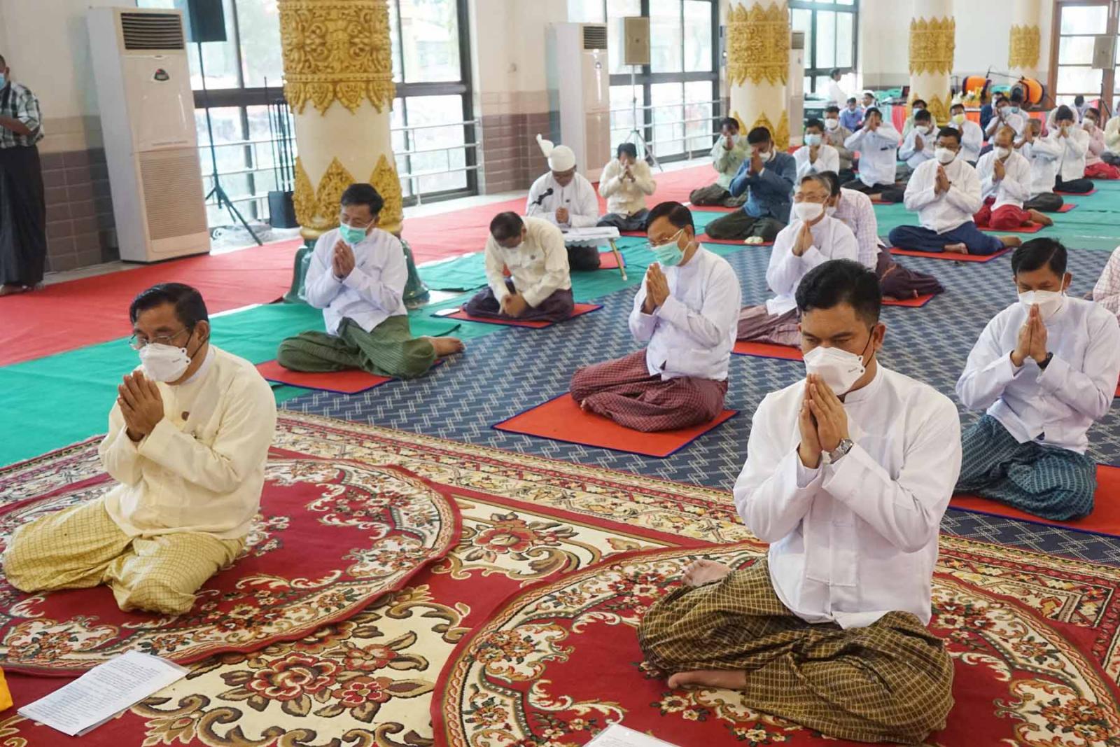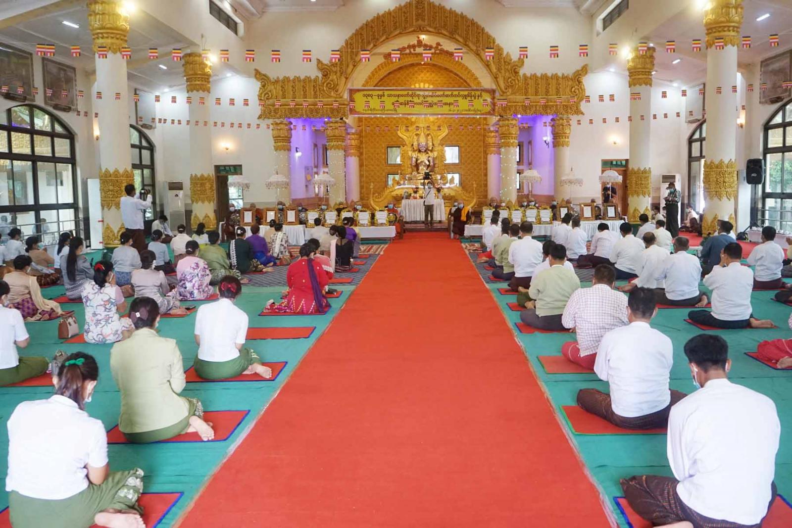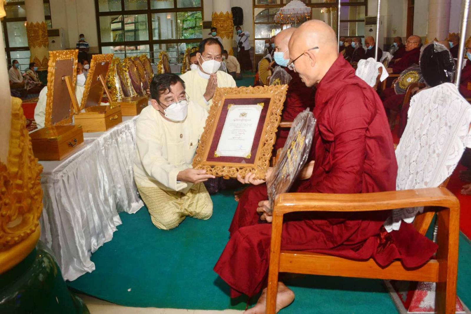 ထို့နောက် သံဃာတော်အရှင်သူမြတ်များ ရွတ်ပွားသရဇ္စျာယ်ချီးမြှင့်တော်မူသော အန္တရာယ်ကင်းပရိတ် တရားတော်များနာယူ ကြည်ညိုခဲ့ကြပြီး တိုင်းဒေသကြီး ဝန်ကြီးချုပ်သီရိပျံချီဦးမြတ်ကိုက သာသနာရေး ဆိုင်ရာများလျှောက်ထားကာ ဘွဲ့တံဆိပ်တော်ရ ဆရာတော်ကြီး(၆)ပါးအား တိုင်းဒေသကြီးဝန်ကြီးချုပ် သီရိပျံ ချီဦးမြတ်ကို၊ ကမ်းရိုးတန်းဒေသတိုင်းစစ်ဌာနချုပ်တိုင်းမှူး ဗိုလ်ချုပ်စောသန်းလှိုင်တို့က ဘွဲ့တံဆိပ်တော်နှင့်လှူဖွယ်ပစ္စည်းများ ဆက်ကပ်လှူဒါန်းပြီး တာဝန် ရှိသူများက သံဃာတော်များအား လှူဖွယ်ပစ္စည်းများဆက်ကပ်လှူဒါန်းသည်။