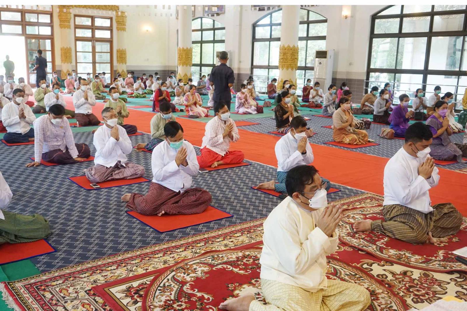 ထို့နောက် တက်ရောက်လာကြသော ဧည့်သည်တော်များက ဗုဒ္ဓသာသနံစိရံတိဌတု သုံးကြိမ်ရွတ်ဆို ဆုတောင်း၍အခမ်းအနားကို ရုပ်သိမ်းလိုက်ကြပြီး မင်္ဂလာ ဝိုင်းတော်အဖွဲ့က အောင်စေပိုင်စေ ဓမ္မတေးဖြင့် သီဆိုပူဇော်ကာ သံဃာတော်များအား ဆွမ်းဆန်စိမ်းလောင်းလှူခဲ့ကြကြောင်း သိရသည်။