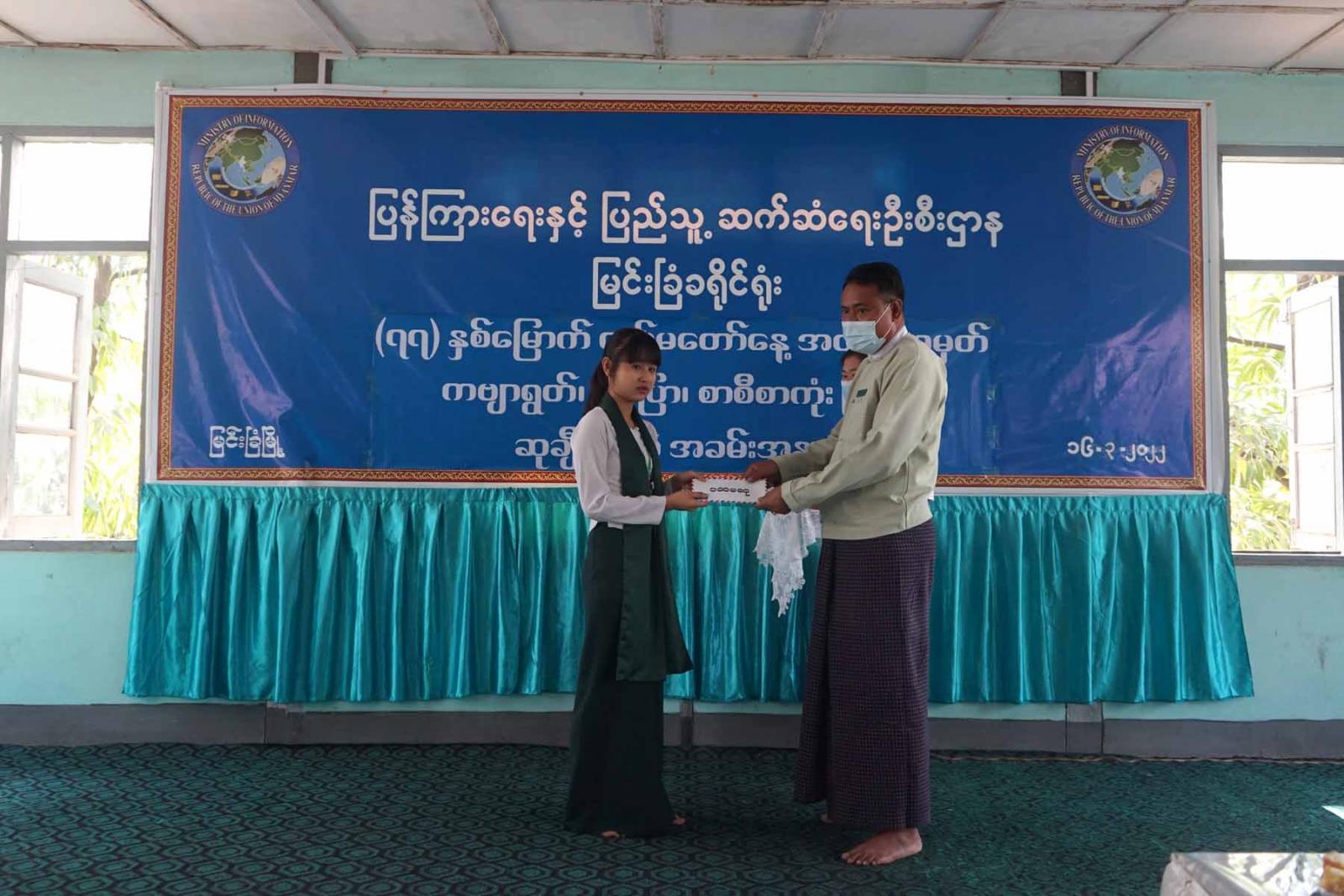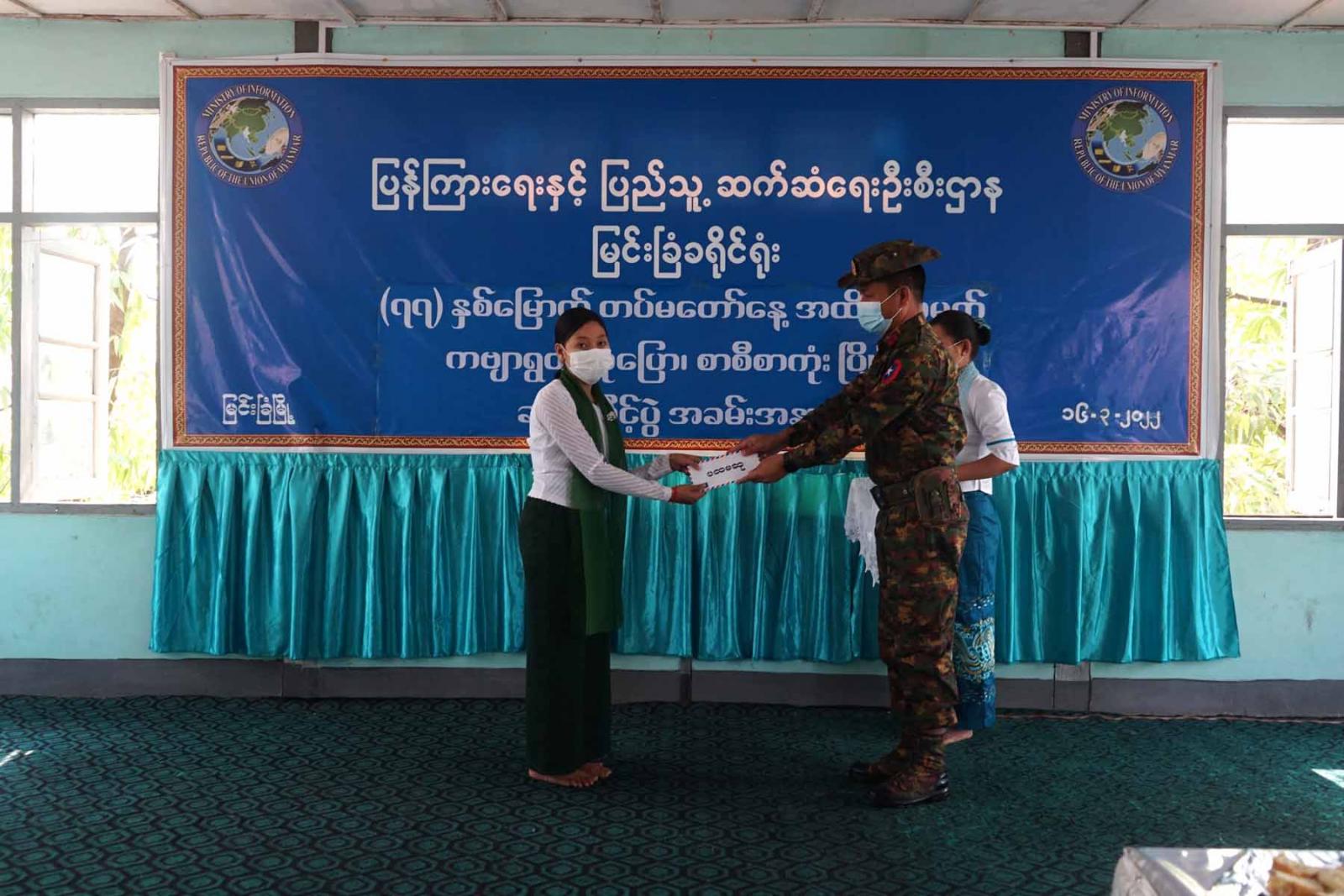 (၇၇) နှစ်မြောက် တပ်မတော်နေ့အထိမ်းအမှတ် ကဗျာရွတ်ဆို၊ ပုံပြင်ပြော၊ စာစီ စာကုံးပြိုင်ပွဲများ ပြုလုပ်နိုင်ရန်အတွက် အလှူငွေများ ထည့်ဝင်လှူဒါန်းပေးသည့် အလှူရှင်များအား ကျေးဇူးတင် ဂုဏ်ပြုမှတ်တမ်းလွှာများ ပေးအပ်ခဲ့ကြောင်း သိရသည်။