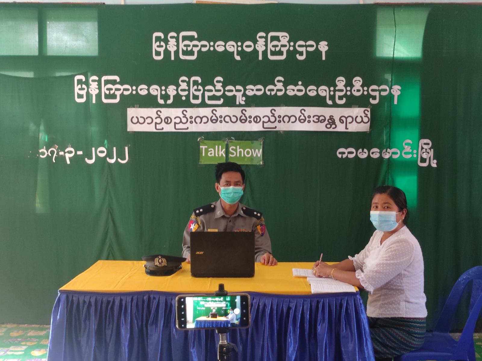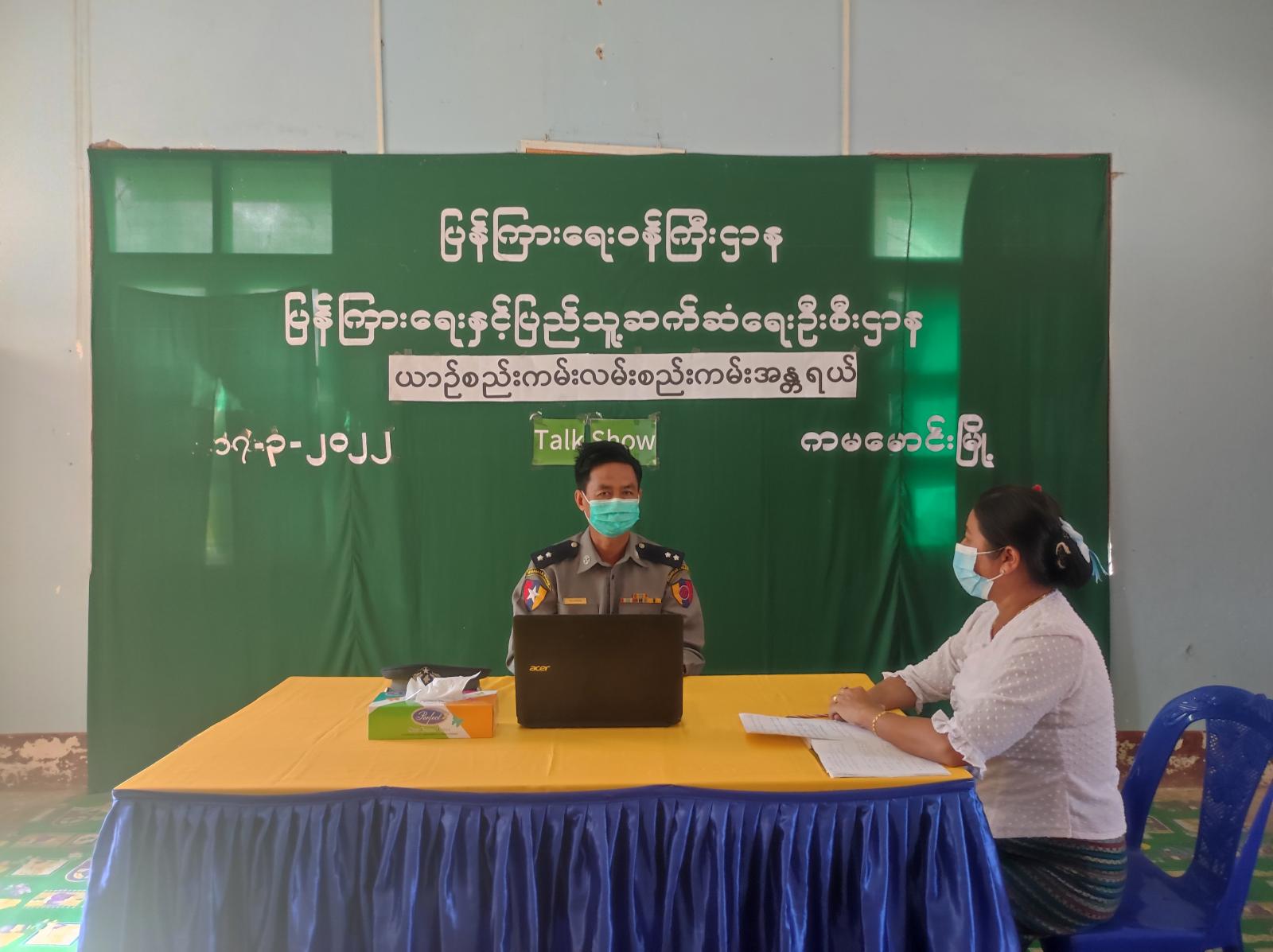 အဆိုပါ ဆွေးနွေးပွဲတွင် ပြန်ကြားရေးနှင့်ပြည်သူဆက်ဆံရေးဦးစီးဌာန ဒုတိယဦးစီးမှူး ဒေါ်ယဉ်ယဉ် အေးက(Talk Show) ပြုလုပ်ရခြင်း ရည်ရွယ်ချက်များကို ရှင်းလင်းပြောကြားပြီး ကမမောင်းနယ်မြေရဲ စခန်းမှ ရဲအုပ်ဝင်းကြိုင်က ယာဉ်မောင်းသူများ လိုက်နာရမည့်စည်းကမ်းများ၊ ယာဉ်တိုက်မှု ဖြစ်ပွားစေသည့် အ အကြောင်းရင်းများ၊ ယာဉ်မမောင်းခင်ယာဉ်များကို သေချာစွာစစ်ဆေးရန်၊ မြို့တွင်းလမ်းမများတွင် ထားရှိရမည့်သင်္ကေတ အမှတ်အသားအဓိပ္ပါယ်များ၊ ယာဉ် စည်းကမ်းလမ်းစည်းကမ်းများ ဖောက်ဖျက်ပါက ကျခံရမည့် ပြစ်မှုပြစ်ဒဏ်များ၊ ယာဉ်စည်းကမ်းလမ်းစည်းကမ်းနှင့် ပတ်သက်သည့်အကြောင်း အရာများကို ဆွေးနွေးပြောကြားခဲ့ကြောင်း သိရှိရသည်။