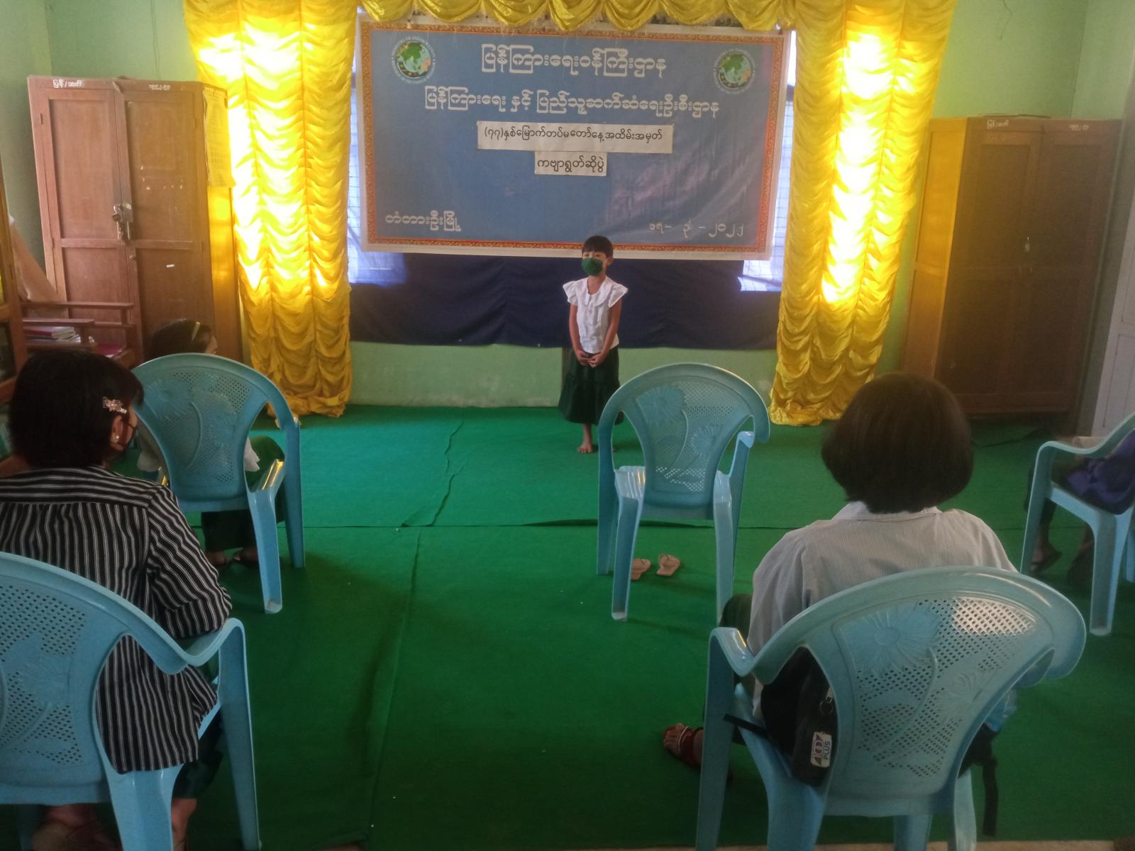 ထို့နောက် ကဗျာရွတ်ဆိုပွဲသို့ တက်ရောက်လာကြသော ကလေးငယ်များက မိမိတို့လေ့လာဖတ်သော တပ်မတော်နေ့ ကဗျာများကို တစ်ဦးချင်းနှင့် အဖွဲ့အလိုက် စုပေါင်း၍ ရွတ်ဆိုကြပြီး တာဝန်ရှိသူများက ကလေးငယ်များအတွက် အမှတ်တရ လက်ဆောင်များ အသီးသီးပေးအပ်ကြကြောင်းသိရသည်။