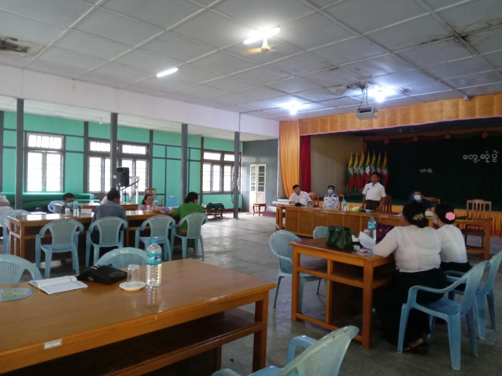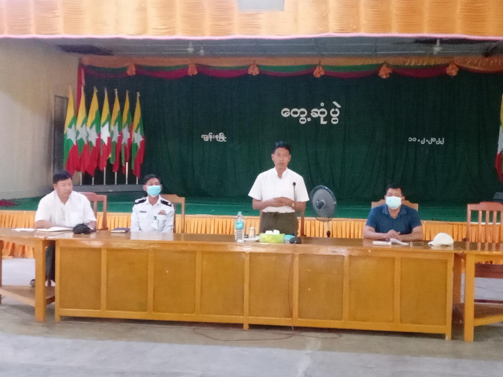 အဆိုပါ အစည်းအဝေးတွင် မြို့နယ်စီမံအုပ်ချုပ်ရေးအဖွဲ့ဥက္ကဋ္ဌ ဦးအောင်စန်းဝင်းက မတ်လ ၃၁ ရက်နေ့မှဧပြီ ၉ ရက်နေ့အထိ ကျင်းပပြုလုပ်မည် တက္ကသိုလ် ဝင်တန်းစာမေးပွဲကို အောင်မြင်စွာ ဆောင်ရွက်နိုင်ရေးအတွက် မြို့နယ်စာမေးပွဲကြီးကြပ်ရေးကော်မတီကို ဖွဲ့စည်းထားပြီးဖြစ်ပါကြောင်း၊ စာစစ်ဌာနများ အလိုက်အေးချမ်းစွာဖြေဆိုနိုင်ရေး၊ လုံခြုံရေးကိစ္စရပ်များနှင့် အခက်အခဲများအားတင်ပြကြရန်ဆွေး