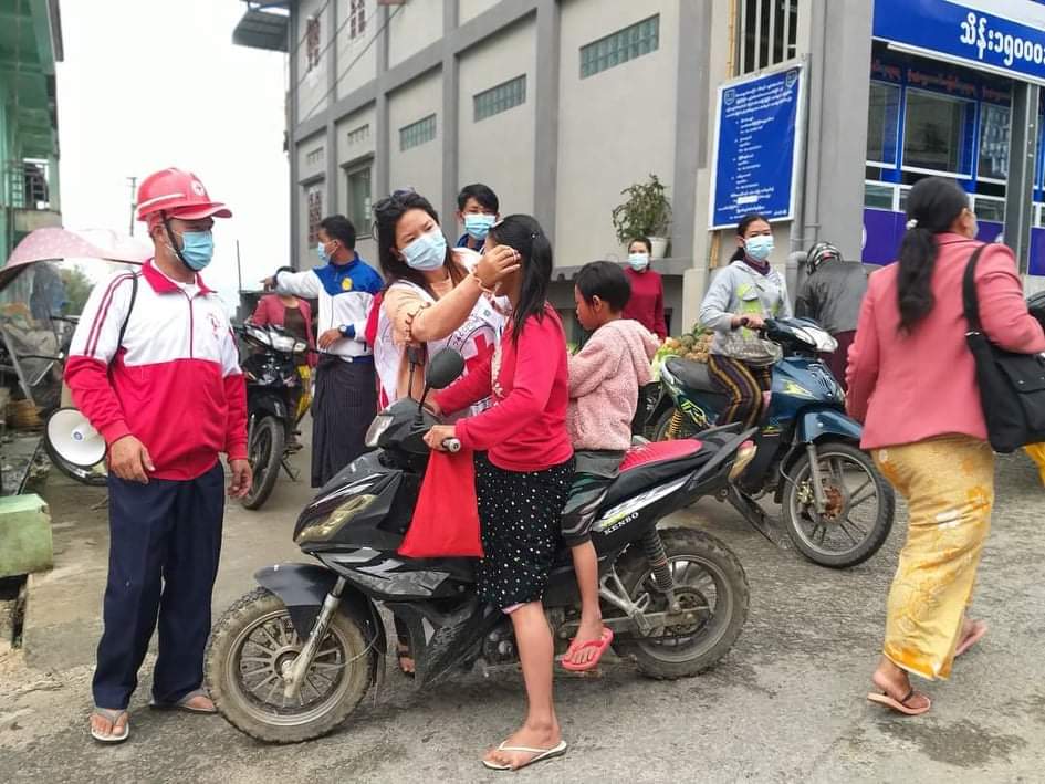 နမ့်ဆန်မြို့နယ်တွင် ကိုဗစ်-၁၉ ကြိုတင်ကာကွယ်ထိန်းချုပ်ရေးလုပ်ငန်းများကို အချိန်နှင့်တစ်ပြေးညီ အရှိန်မြှင့် ပြန်လည်ဆောင်ရွက်လျှက်ရှိရာ ရောဂါကာကွယ်ထိန်းချုပ်ရေး လုပ်ငန်းများ အောင်မြင်စေရေးအတွက် ပြည်သူများမှ ပူးပေါင်းပါဝင်မှု ရှိလာစေရန်အတွက်၊ ရပ်ကွက်အတွင်း လှည့်လည်နှိုးဆော်ခြင်းများ၊ မြို့နယ်အဝင် စစ်ဆေးကြပ်မတ်သည့် လုပ်ငန်းများကို အရှိန်မြင့်ဆောင်ရွက်လျှက်ရှိရာ ယနေ့နံနက်တွင် ပြည်သူများ နှာခေါင်းစည်းများ စနစ်တကျ တပ်ဆင်မှုရှိလာစေရေးအတွက် mask Campaign ပြုလုပ်ပြီး ဈေးရောင်း၊ ဈေးဝယ်များနှင့် လမ်းသွားလမ်းလာ မိဘပြည်သူများတို့ကို mask များ အခမဲ့ဖြန့်ဝေပေးခဲ့သည်။ ထို့ပြင် ကိုဗစ်-၁၉ ကာကွယ်ထိန်းချုပ်မှုလုပ်ငန်းတွင် ပြည်သူများ မိမိကစကာကွယ်ပြီး ရောဂါကူးစက်ဖြစ်ပွားမှုကို ပူးပေါင်းပါဝင်လာစေရေး အသိပညာပေးခြင်းကို တဆက်တည်း လှည့်လည်နှိုးဆော် ဆောင်ရွက်လျက်ရှိကြောင်း သိရသည်။