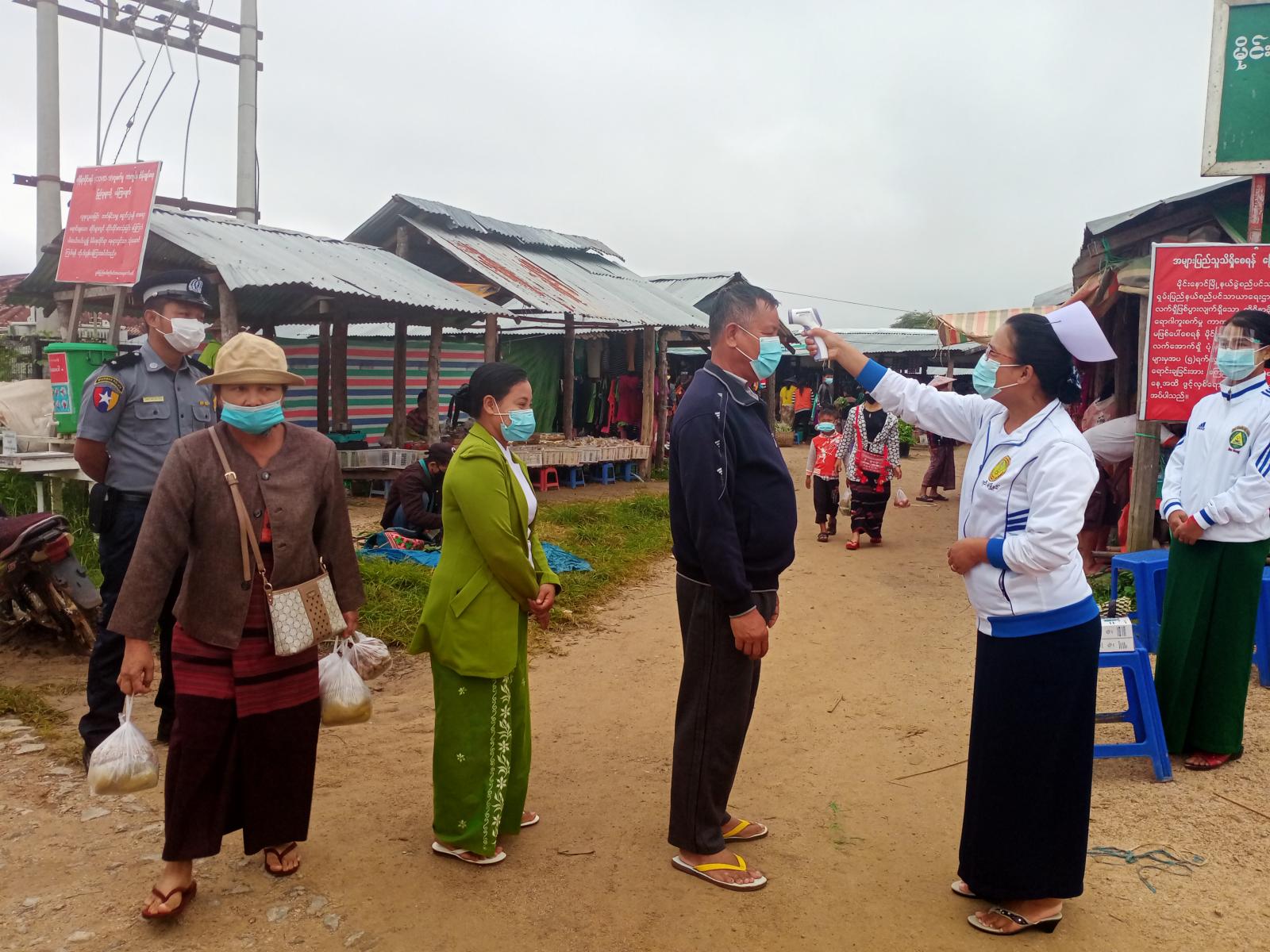 ထိုသို့ ဆောင်ရွက်ရာတွင် အထွေထွေအုပ်ချုပ်ရေးဦးစီးဌာနမှ တာဝန်ရှိသူများ၊ ကိုဗစ်-၁၉ ရောဂါ ကာကွယ်၊ ထိန်းချုပ်၊ ကုသရေး ကော်မတီဝင်များ၊ ရပ်ကွက်အုပ်ချုပ်ရေးမှူးများနှင့် လူမှုရေး အသင်းအဖွဲ့များ စုပေါင်း၍ စျေးအတွင်းရောင်းချနေသူစျေးသည်များနှင့် စျေးဝယ်သူများ အပူချိန်တိုင်းတာပေးခြင်း၊ (mask)နှာခေါင်းစည်း တပ်ဆင်ခြင်း ရှိ/မရှိ ရှောင်တခင်စစ်ဆေးခြင်းနှင့် တပ်ဆင်ခြင်းမရှိသူများအား အခုဝယ်၊ အခုတပ်စနစ်ဖြင့် ရောင်းချတပ်ဆင်စေခြင်းများ ဆောင်ရွက်ခဲ့ပါသည်။