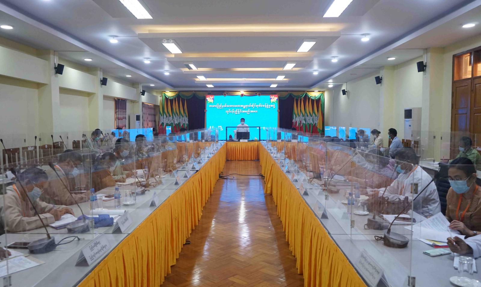 ဆက်လက်၍ တက်ရောက်လာကြသည့် ပြည်နယ်အဆင့်ဆပ်ကော်မတီ၊ အတွင်းရေးမှူးများက သဘာဝ ဘေးအန္တရာယ်ဆိုင်ရာ ကိစ္စရပ်များနှင့်စပ်လျဉ်း၍ ကြိုတင်စီမံ ဆောင်ရွက်ထားရှိသည့် အခြေအနေ များကို ဆွေးနွေးတင်ပြခဲ့ကြပြီး သက်ဆိုင်ရာ ပြည်နယ်ဆပ်ကော်မတီ ဥက္ကဋ္ဌများ ဖြစ်ကြသည့် ပြည်နယ် အစိုးရအဖွဲ့ဝင်၊ ဝန်ကြီးများက လိုအပ်သည်များကို ဖြည့်စွက်ဆွေးနွေးခဲ့ကြသည်။