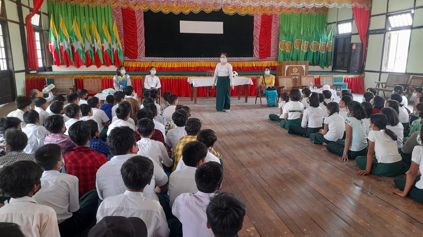 ရှေးဦးစွာ မြို့နယ်ပြန်ကြားရေးနှင့်ပြည်သူ့ဆက်ဆံရေးဦးစီးဌာန ဦးစီးအရာရှိ ဒေါ်သိမ့်ဝါက ကျောင်းသား/ ကျောင်းသူ လူငယ်လူရွယ်များအား နွေရာသီကျောင်းပိတ်ရက် ကာလပြင်ပ ဗဟုသုတရရှိစေမည့် စာပေများ ဖတ်ရှု့လေ့လာရေး၊ စိတ်ဓာတ်ခွန်အား၊ ပတ်ဝန်းကျင်နှင့် ဆက်ဆံရေး၊ အမှား/ အမှန် ဝေဖန်ပိုင်းခြားနိုင်မှု စွမ်းရည်မြင့်မားရေး အကြောင်းအရာများကို “လူငယ်ဖွံဖြိုးရေး” ခေါင်းစဉ်ဖြင့်လည်းကောင်း၊ မြို့နယ်အားကစားနည်းစနစ်မှူးဒေါ်ဥမ္မာသင်းက “လူငယ်နှင့်အားကစား” ခေါင်းစဉ်ဖြင့် အားကစားသင်တန်းများ ဖွင့်လှစ်ပေးနေမှု အခြေအနေများကိုလည်းကောင်း၊ အ.ထ.က(၁) ကျောင်းအုပ်ဆရာကြီး ဒေါ်ကျော့မေခိုင်က “စိတ်ဓာတ်၊ စည်းကမ်း၊ အကျင့်စာရိတ္တ” ခေါင်းစဉ်ဖြင့် ကျောင်းသား/ကျောင်းသူများအတွက် ဆောင်ရန်၊ ရှောင်ရန်အချက်များကို လည်းကောင်း အသီးသီး ဆွေးနွေးခဲ့ကြပြီး မြို့နယ်အားကစားနည်းစနစ်မှူး ဒေါ်ဥမ္မာသင်းက ကျောင်းအတွက် အားကစားပစ္စည်း ဘောလုံးအားပေးအပ်လှူဒါန်းခဲ့သည်။