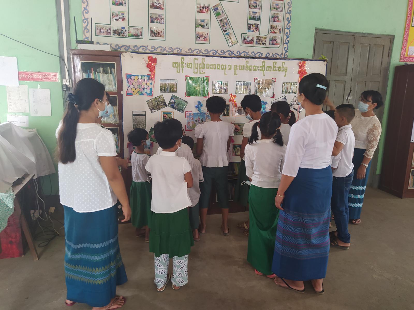 ထို့နောက်တက်ရောက်လာသော ကလေးများအား စာကြည့်တိုက်မှူး ဒေါ်ပြည့်ဖြိုးသူက ရုပ်ပုံစာအုပ်ဖြင့် ပုံပြော၍ ကလေးများအား လက်ဆောင်များ ပေးအပ်ခဲ့ကြသည်။