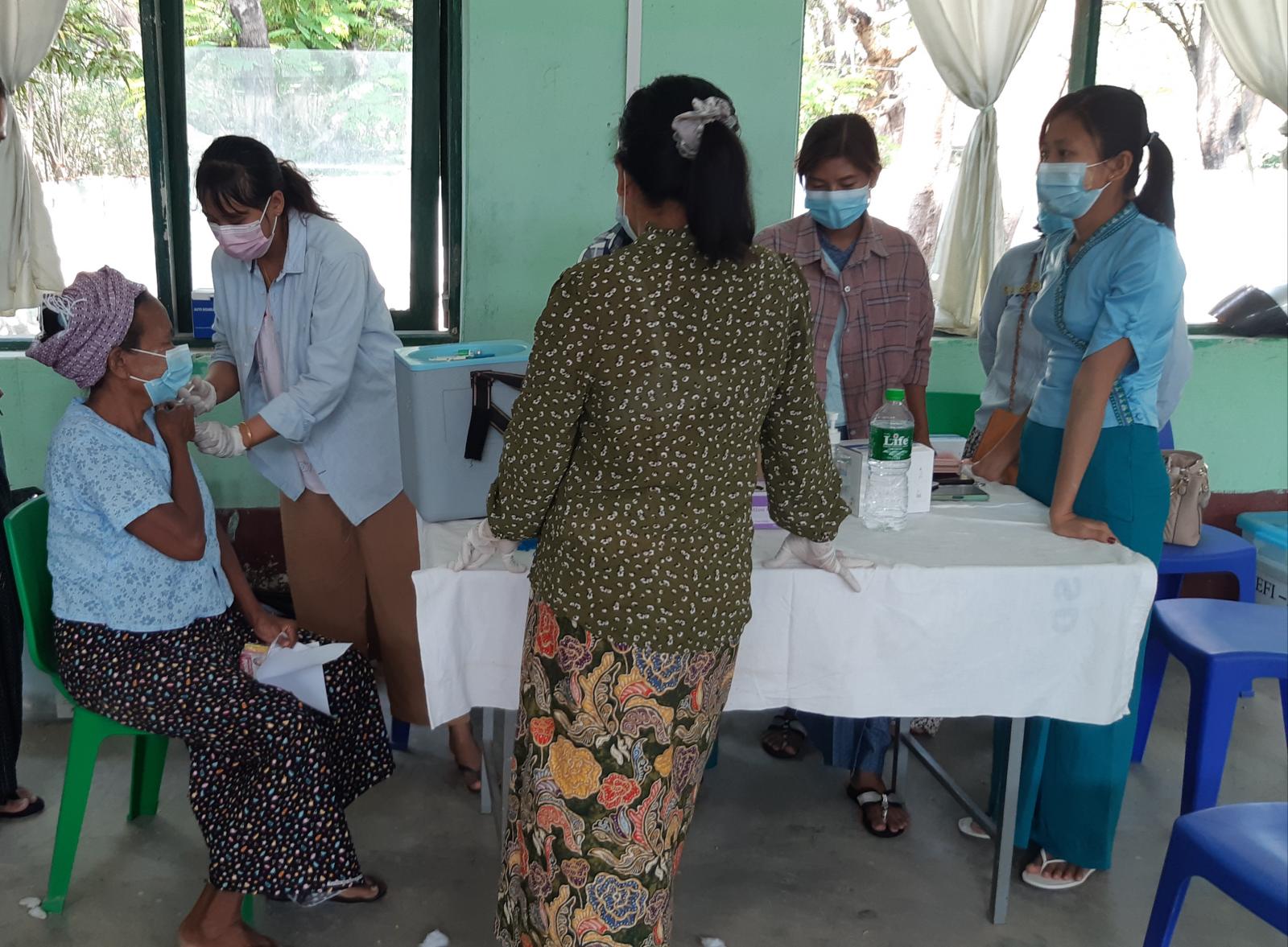 ကိုဗစ်-၁၉ ရောဂါကာကွယ်ဆေးများ ထိုးနှံပေးခြင်းဆောင်ရွက်ပေးရာတွင် မြို့ပေါ်ရပ်ကွက်/ကျေးရွာအုပ်စုများရှိအသက်(၆၅)နှစ်အထက်ရှိသူများ၊ ဒေသခံပြည်သူများအား ကိုဗစ်-၁၉ ရောဂါ ကာကွယ်နိုင်ရေးအတွက် ကျန်မာရေးဝန်ကြီးဌာန၏ လမ်းညွှန်ချက်များနှင့်အညီ ကျန်းမာရေးစစ်ဆေးပေးခြင်း၊ သွေးပေါင်ချိန်တိုင်းတာပေးခြင်း၊ ကိုယ်ရေးအချက်အလက် စာရင်းများ ရေးသွင်းခြင်းများဆောင်ရွက်ခဲ့ပြီး သတ်မှတ်စည်းကမ်းများနှင့်ကိုက်ညီသူများကို ကာကွယ်ဆေးများထိုးနှံပေးလျက်ရှိပြီး ဝမ်းတွင်းမြို့နယ်အနေဖြင့် ယနေ့နံနက်တွင် First Dose အဖြစ်(၁၈၇၀)ဦး၊ SecondDoseအဖြစ်(၃၃)ဦး၊ ဒေသခံပြည်သူစုစုပေါင်း (၁၉၀၃) ဦးအားကာကွယ်ဆေးများထိုးနှံပေးခဲ့ကြောင်း သိရသည်။