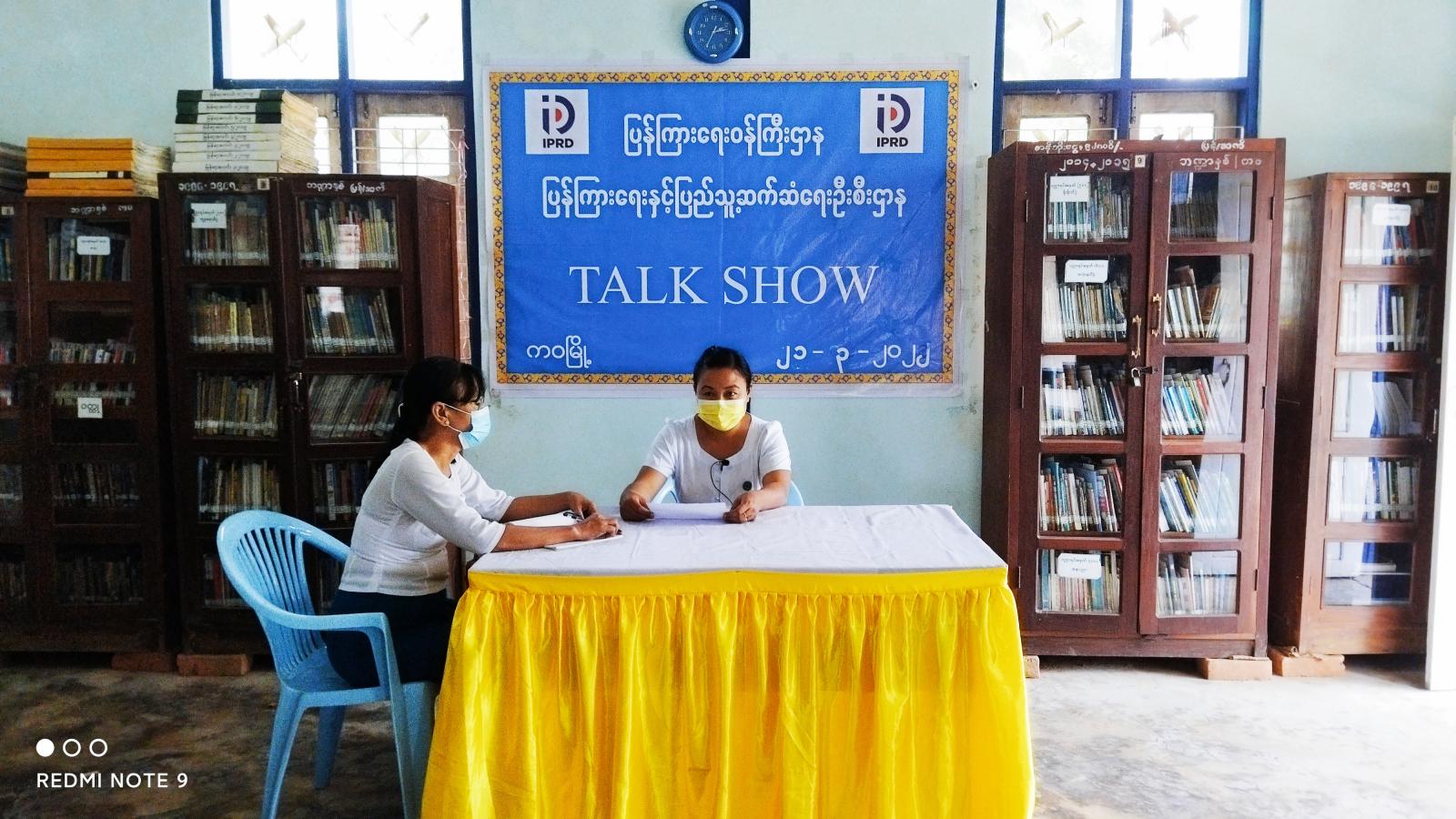 အသိပညာပေး ဆွေးနွေးပွဲတွင် မြို့နယ်ပြန်ကြားရေးနှင့်ပြည်သူ့ဆက်ဆံရေးဦးစီးဌာန၊ မြို့နယ် ဦးစီးမှူးဒေါ်သန်းသန်းဝင်းက အသိပညာပေးဆွေးနွေးပွဲ Talk Show ပြုလုပ်ရခြင်း ရည်ရွယ်ချက်အား ရှင်းလင်းပြောကြားခဲ့သည်။