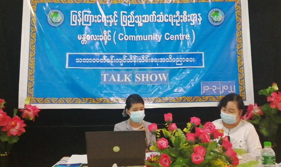 မန္တလေးခရိုင် ပြန်ကြားရေးနှင့် ပြည်သူ့ဆက်ဆံရေးဦးစီးဌာနနှင့်ခရိုင် ပတ်ဝန်းကျင် ထိန်းသိမ်းရေးဦးစီးဌာနတို့ ပူးပေါင်းကျင်းပသော သဘာဝပတ်ဝန်းကျင်ထိန်းသိမ်းရေး အသိပညာပေး ဆွေးနွေးပွဲ(Talk Show)ကို ယမန်နေ့နံနက်(၁၀)နာရီတွင် မန္တလေးခရိုင်လူထုအခြေပြုဗဟိုဌာန သင်တန်းခန်းမ၌ ကျင်းပပြုလုပ်သည်။