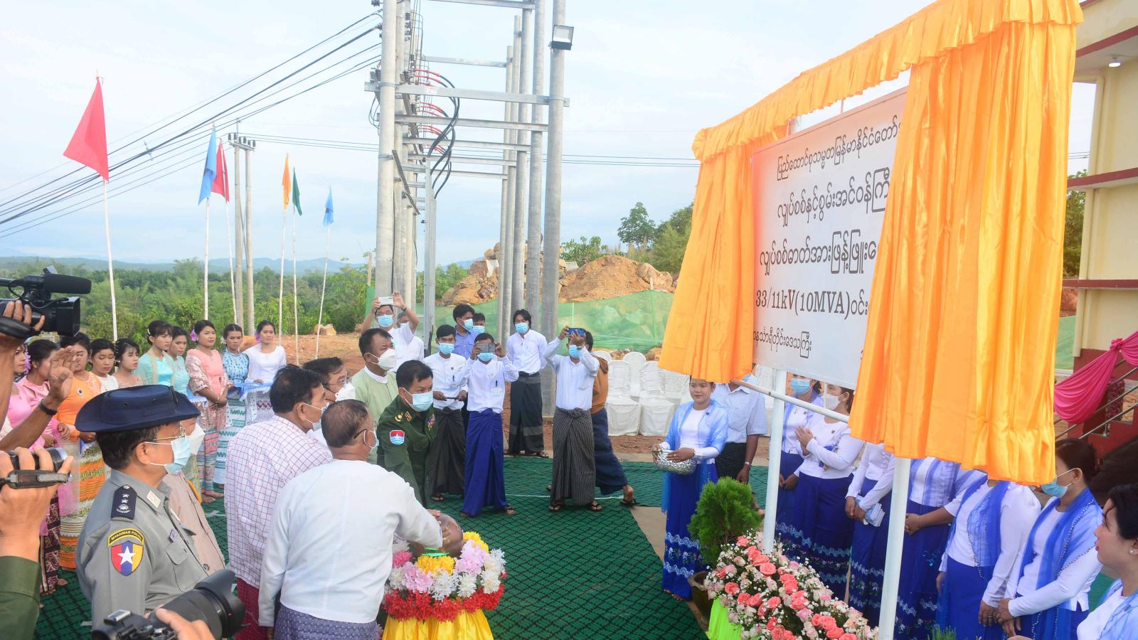 ရှေးဦးစွာတိုင်းဒေသကြီးဝန်ကြီးချုပ်ဦးမြတ်ကို၊ တိုင်းဒေသကြီးဝန်ကြီးများ၊ သုဟန်စည်ကုမ္ပဏီနှင့် ဒေသခံရပ်မိရပ်ဖတစ်ဦးတို့က လျှပ်စစ်ဓာတ်အားခွဲရုံအား ဖဲကြိုးဖြတ်ဖွင့်လှစ်ပေးပြီးတိုင်းဒေသကြီး ဝန်ကြီးချုပ်နှင့်တာဝန်ရှိသူများက ဆိုင်းဘုတ်အား စက်ခလုတ်နှိပ်ဖွင့်လှစ်ပေး၍ အမွှေးနံ့သာရည်များ ပက်ဖျန်းပေးခဲ့သည်။