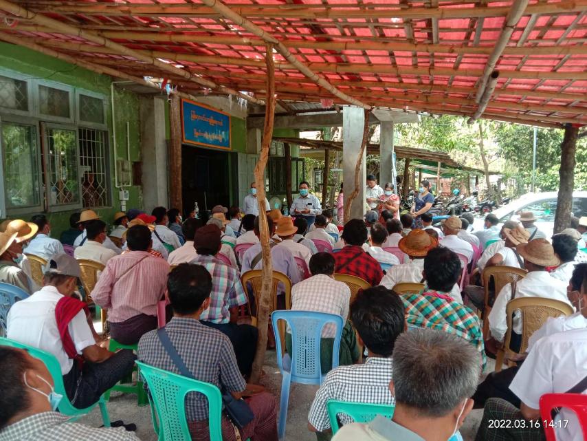 ပဲခူးတိုင်းဒေသကြီးအတွင်း စိုက်ပျိုးစရိတ် အချိန်စေ့ကြွေးကျန်များ ပိုမိုကောက်ခံရရှိရေး ကြွေးကျန်များ လျော့နည်းကျဆင်းရေးနှင့် ကြွေးပြေကျေသူတောင်သူများအား ၂၀၂၂ ခုနှစ်၊ မိုးချေးငွေထုတ်ချေးနိုင်ရေးဟူသော ရည်ရွယ်ချက်များဖြင့် ကွင်းဆင်းဆောင်ရွက် လျက်ရှိသည်။