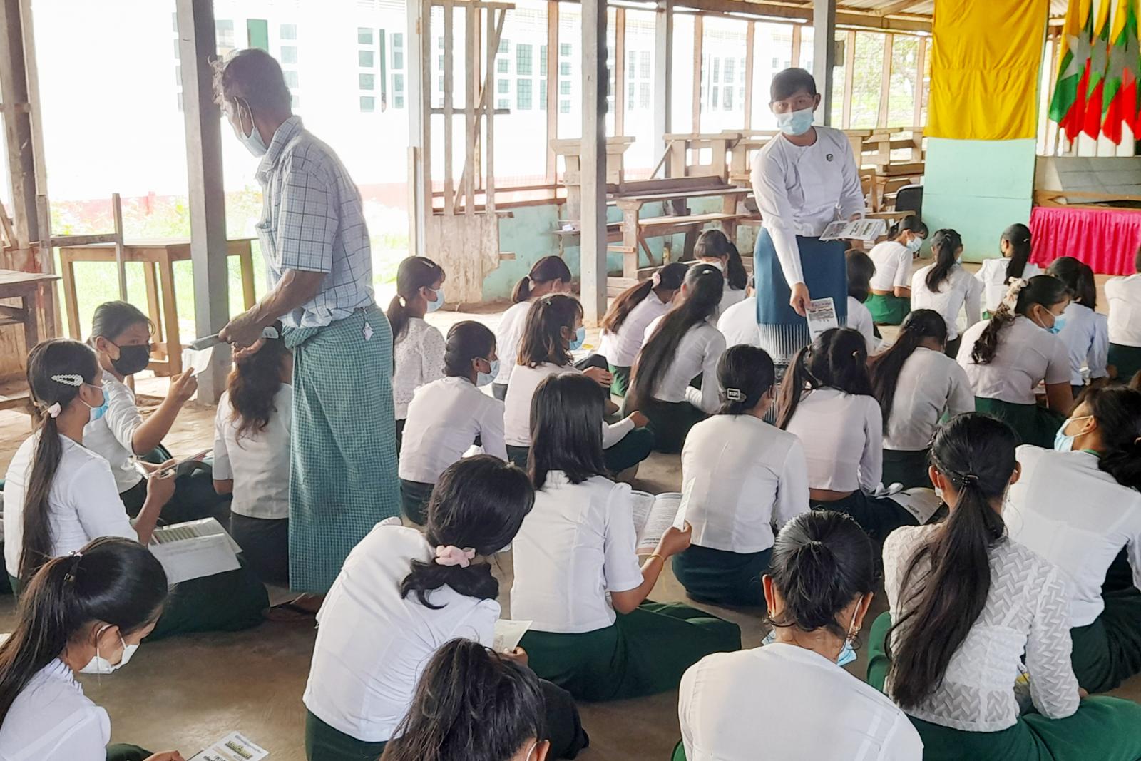 အဆိုပါ (၇၇)နှစ်မြောက် တပ်မတော်နေ့အထိမ်းအမှတ် သတင်းစကား လက်ကမ်းစာစောင်တွင် (၇၇)နှစ်မြောက် တပ်မတော်နေ့ ဦးတည်ချက်များ၊ တပ်မတော်၏အစဉ်အလာကောင်း (၁၂)ရပ်၊ ကာကွယ်စောင့်ရှောက်သွားမည်သာ ဆောင်းပါး၊ ဗိုလ်ချုပ် အောင်ဆန်း ၁၉၄၇ ခုနှစ်၊ ဇွန်လဆန်း၌ ဗမာနိုင်ငံလုံးဆိုင်ရာ မီးသတ်အစည်းအရုံးကြီးတွင် ပြောကြားသည့် မိန့်ခွန်းမှ ကောက်နုတ်ချက်၊ နိုင်ငံတော် စီမံအုပ်ချုပ်ရေးကောင်စီဥက္ကဋ္ဌ တပ်မတော်ကာကွယ်ရေးဦးစီးချုပ် ဗိုလ်ချုပ်မှူးကြီး မဟာသရေ စည်သူမင်းအောင်လှိုင် ၂၇-၃-၂၀၂၁ ရက်နေ့(၇၆)နှစ်မြောက် တပ်မတော်နေ့ စစ်ရေးပြ အခမ်းအနားတွင် ပြောကြားသည့် မိန့်ခွန်းမှကောက်နုတ်ချက်၊ (၂၇-၃-၂၀၂၁) ရက်နေ့ထုတ် မြန်မာ့ အလင်းသတင်းစာမှ စိုးမိုး(ပုသိမ်)ရေးသားသည့် နွေအလှကဗျာ၊ တပ်မတော်ဆောင်ပုဒ်များ စုံလင်စွာပါရှိသည့် လက်ကမ်းစာစောင်များကို အခြေခံပညာကျောင်းများ၊ မြို့မဈေးနှင့် လမ်းသွားလမ်း လာ ပြည်သူများထံ(၂၅၆)စောင် အခမဲ့ဖြန့်ဝေပေးခဲ့ကြောင်း သိရသည်။