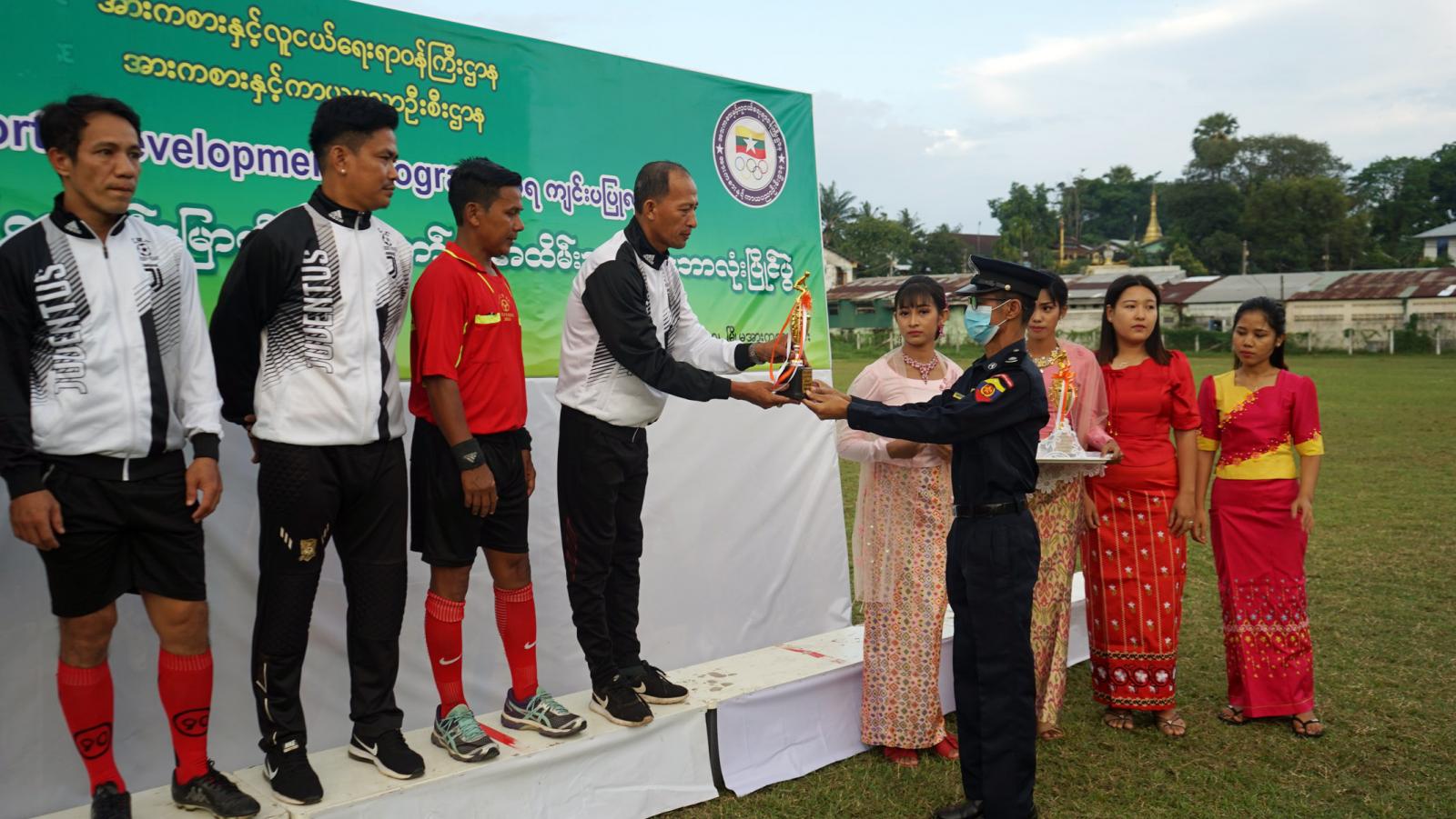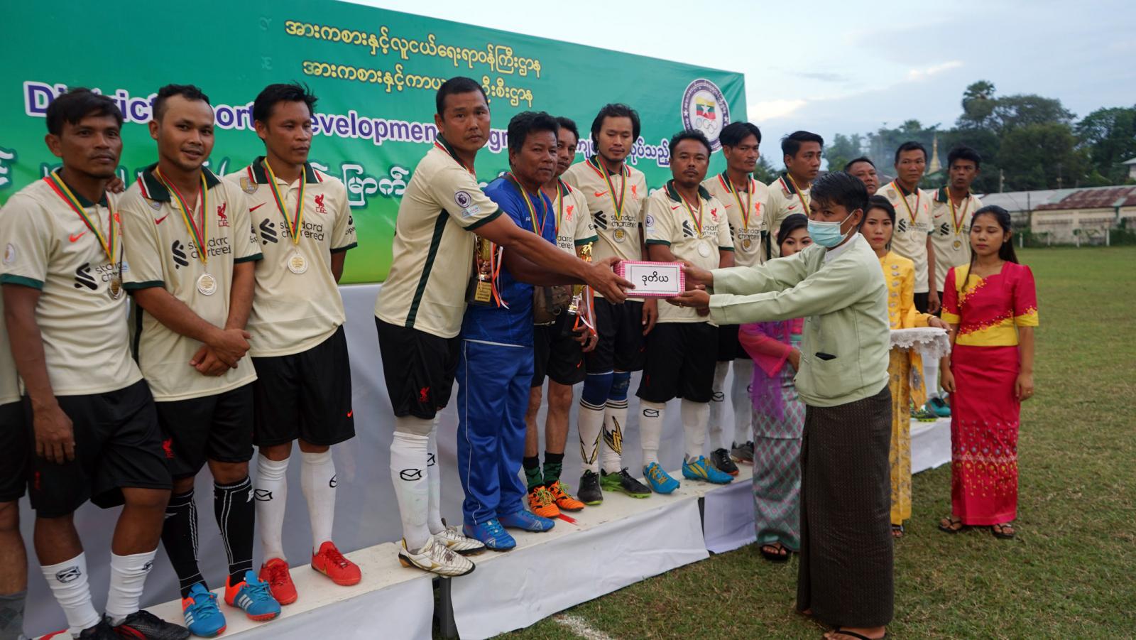 ထို့နောက် ပြိုင်ပွဲတွင် ဒုတိယဆုရရှိသောအသင်းမှ အားကစားသမားများအား လည်ဆွဲဆုများနှင့် ငွေသားဆုကို ဒုတိယမြို့နယ် အုပ်ချုပ်ရေးမှူး ဦးမြင့်ဇော်ဌေးက ပေးအပ်ချီးမြှင့်ခဲ့ပြီး ပထမရရှိသော အသင်းမှ အားကစား သမားများအား လည်ဆွဲဆုများ၊ ငွေသားဆုနှင့် တံခွန်စိုက်ဆုဖလားကို မြို့နယ်စီမံအုပ်ချုပ်ရေးအဖွဲ့ အဖွဲ့ဝင် ဗိုလ်မှူး ငွေစိုးက ပေးအပ်ချီးမြှင့်ခဲ့ကြောင်း သိရသည်။