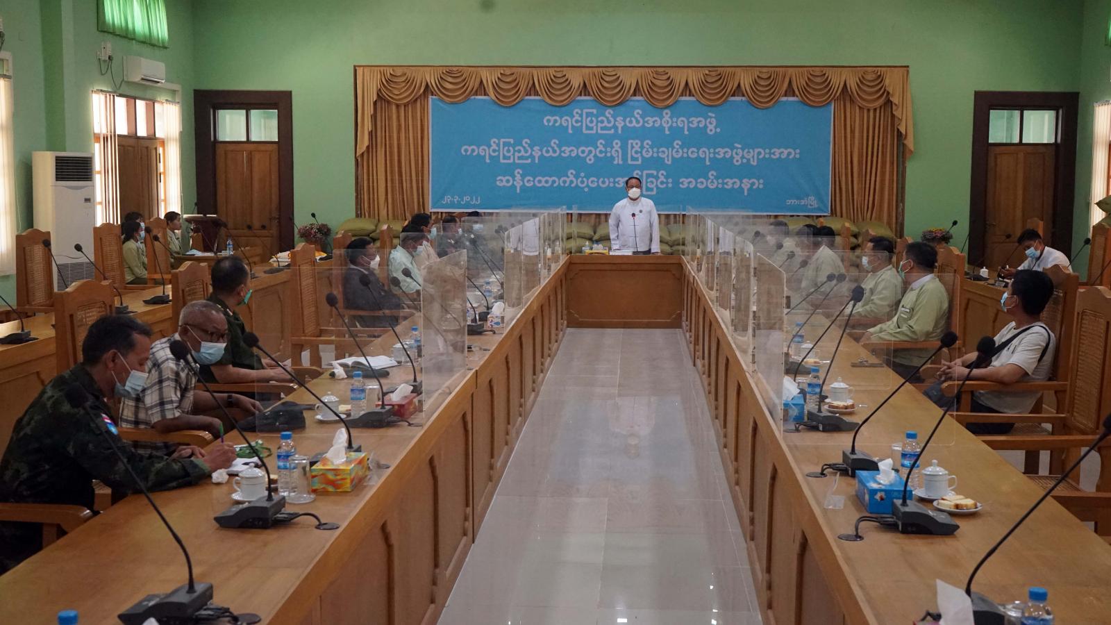 ထိုသို့ထောက်ပံ့ပေးအပ်ရာတွင် ကရင်ပြည်နယ်ဝန်ကြီးချုပ် ဦးစောမြင့်ဦးက ကရင်ပြည်နယ်အစိုးရအဖွဲ့အနေဖြင့် ငြိမ်းချမ်းရေး တပ်ဖွဲ့ဝင်မိသားစုများ စားဝတ်နေရေးနှင့်သက်သာ ချောင်ချိရေးအတွက် စိုက်ပျိုးမွေးမြူရေး လုပ်ငန်းများ၊ စီးပွားရေးလုပ်ငန်းများ တွင် ဝိုင်းဝန်းကူညီထောက်ပံ့ပေးခြင်းများ ဆောင်ရွက်ခဲ့ကြောင်း၊ ငြိမ်းချမ်းရေး အဖွဲ့များအနေဖြင့် NCA လမ်းကြောင်းကို မသွေဖီ မယိမ်းယိုင်စေဘဲ တည့်မတ်စွာလျှောက်လှမ်းနိုင်ရေး မေတ္တာရပ်ခံ တိုက်တွန်းလိုပါကြောင်း၊ နိုင်ငံတော်၏ ရှေ့လုပ်ငန်းစဉ်(၅) ရပ်တွင် ထာဝရငြိမ်းချမ်းရေးရရှိရေးအတွက် NCA ပါ သဘောတူညီချက်များ အတိုင်း အလေးထားလုပ်ဆောင်သွား မည်ဆိုသည့် အချက်ကို ထည့်သွင်းထားပြီး ငြိမ်းချမ်းရေး ဆိုင်ရာကိစ္စရပ်များကို အတူတကွပူးပေါင်း ဆောင်ရွက်နိုင်ရန် တတ်နိုင်သမျှ ဥပဒေ ဘောင် အတွင်းမှ ဆောင်ရွက်ပေးဖို့ အသင့်ရှိပါကြောင်း ပြောကြားသည်