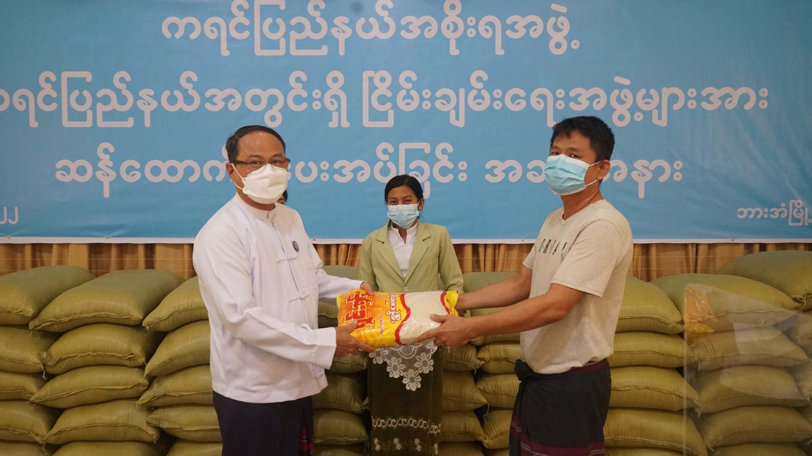 ကရင်ပြည်နယ်အစိုးရအဖွဲ့မှ ပြည်နယ်အတွင်းရှိ ငြိမ်းချမ်းရေးအဖွဲ့များအား ဆန်ထောက်ပံ့ပေး အပ်သည့်အခမ်းအနားကို ယနေ့ မွန်းလွဲ ၂ နာရီအချိန်ခန့်က ကရင်ပြည်နယ်အစိုးရအဖွဲ့ရုံး အစည်းအဝေးခန်းမ(၂)၌ ကျင်းပသည်။