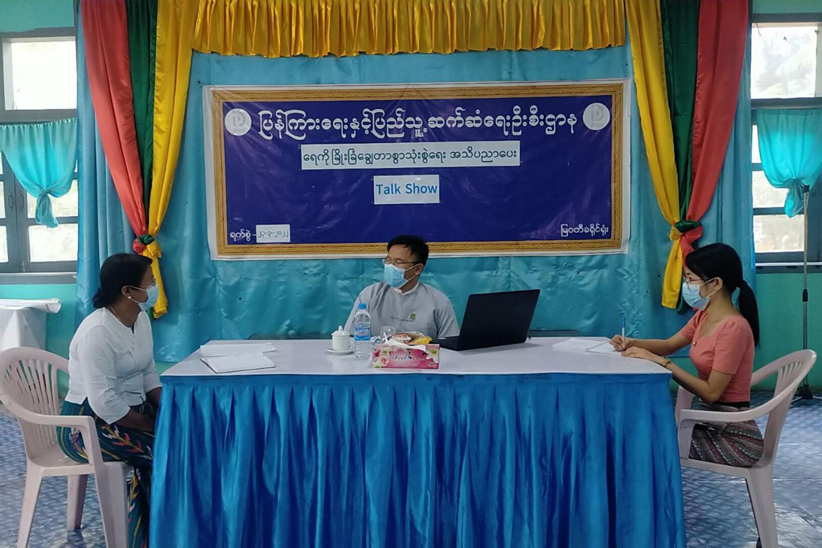 ကမ္ဘာပေါ်ရှိ သက်ရှိသတ္တဝါတိုင်းအတွက် မရှိမဖြစ်အသုံးဝင်သည့် ရေသယံဇာတများပျက်စီး ဆုံးရှုံးမှုမှ ကာကွယ်နိုင်ရန်နှင့် ရေအရင်းအမြစ်များ ရေရှည်တည်တံ့အောင် ထိန်းသိမ်းကာကွယ် စောင့်ရှောက်စေလိုသောရည်ရွယ်ချက်ဖြင့် မြဝတီခရိုင် ပြန်ကြား ရေးနှင့် ပြည်သူ့ဆက်ဆံရေးဦးစီးဌာနနှင့် ခရိုင်ပတ်ဝန်းကျင်ထိန်းသိမ်းရေးဦးစီးဌာနတို့ ပူးပေါင်းကာ ယမန်နေ့ ညနေ ၃ နာရီက လူထုအခြေပြု ဗဟိုဌာန(CommunityCentre)ခန်းမတွင်ရေကိုခြိုးခြံချွေတာသုံးစွဲရေးအသိပညာပေး ဆွေးနွေးပွဲ (Talk Show)ကို Online မှရိုက်ကူးထုတ်လွှင့်ပေးသည်။