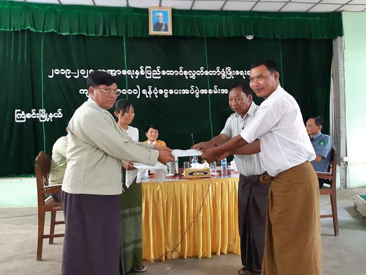 ဆက်လက်ပြီး ၂၀၁၉-၂၀၂၀ ဘဏ္ဍာရေးနှစ် ပြည်ထောင်စု လွှတ်တော်ဖွံ့ဖြိုးရေး ရန်ပုံငွေ ကျပ်သိန်း (၁၀၀၀)ဖြင့် ဆောင်ရွက်မည့် ကြံခင်းမြို့နယ်အတွင်းမှ တည်နေရာ (၃၄)နေရာ အတွက် လုပ်ငန်း(၇)မျိုးဖြင့် ဆောင်ရွက်ရန် ခွင့်ပြုငွေ (ပထမအကြိမ်) ၅၀ ရာခိုင်နှုန်းအား သက်ဆိုင်ရာ လုပ်ငန်းကော်မတီဥက္ကဋ္ဌများအား ပေးအပ်ခဲ့သည်။