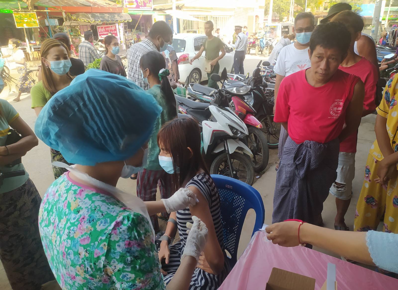 မန္တလေးတိုင်းဒေသကြီး ညောင်ဦးမြို့နယ်၌ ကိုဗစ်-၁၉ ကာကွယ်ဆေးရာနှုန်းပြည့် ထိုးနှံနိုင်ရေး ဌာနဆိုင်ရာများနှင့်ရပ်ကွက် အုပ်ချုပ်ရေးမှူးများပါဝင်သည့် Mobile ပူးပေါင်း အဖွဲ့က ကိုဗစ်-၁၉ရောဂါကာကွယ်ဆေးထိုးနှံပြီး/မပြီး ဆေးထိုးပြီးကြောင်း သက်သေခံ လက်မှတ်ရှိ/မရှိကို မြို့အဝင်အထွက်ဂိတ်များတွင် ရှောင်တခင်စစ်ဆေးခြင်းကို ယနေ့နံနက် ၆နာရီခွဲအချိန်က စတင် ပြီးစစ်ဆေးဆောင်ရွက်လျက်ရှိကြောင်း သိရသည်။