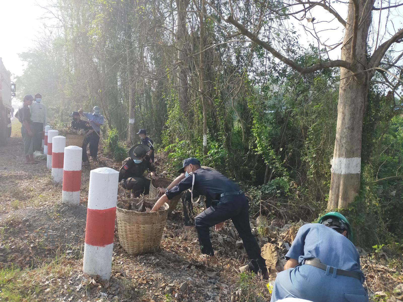 ထိုသို့ဆောင်ရွက်ရာတွင် မြို့နယ် အထွေထွေအုပ်ချုပ်ရေးဦးစီးဌာန ဒုတိယမြို့နယ်အုပ်ချုပ် ရေးမှူး ဦးထွန်းသန့်စင်မျိုးနှင့် မြို့နယ်အဆင့် ဌာနဆိုင်ရာအကြီးအကဲများနှင့်ဝန်ထမ်းများက ကြံခင်း-မြန်အောင်ကားလမ်းမကြီးဘေးဝဲယာမှ ပေါင်းမြက်များ ခုတ်ထွင်ရှင်းလင်းခြင်း၊ သစ်ကိုင်းခြောက်များ၊ သစ်ရွက်ခြောက်များ၊ ပလပ်စတစ်များကို စုပေါင်းကောက်သိမ်းခြင်း မြို့နယ်စည်ပင်သာယာရေးအဖွဲ့ပိုင်ကားဖြင့်သယ်ယူပြီးစနစ်တကျစွန့်ပစ်ခြင်းအားဆောင်ရွက်ခဲ့ကြောင်း သိရသည်။